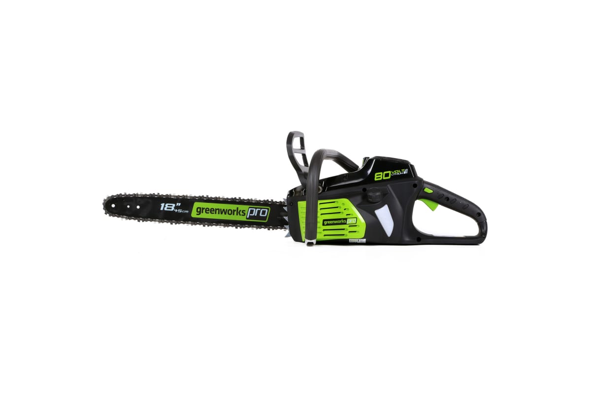 - Прорезиненная передняя рукоятка обеспечивает надежное удержание аккумуляторной бесщеточной цепной пилы GreenWorks GD80CS50 2000507;