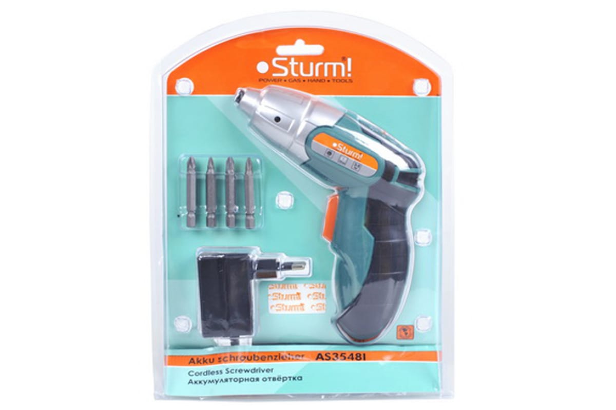 Электрическая отвертка Sturm AS3548I - инструмент для завинчивания и вывинчивания винтов, шурупов, саморезов и др. Питается от никель-кадмиевых аккумуляторов напряжением 4.8 В и емкостью 1000 мАч. Также предусмотрен сетевой адаптер для питания отвертки от электросети. Время заряда аккумулятора 3 часа. Максимальное число оборотов на холостом ходу 150 об/мин. Для улучшения видимости в рабочей зоне инструмент оснащен светодиодной подсветкой.