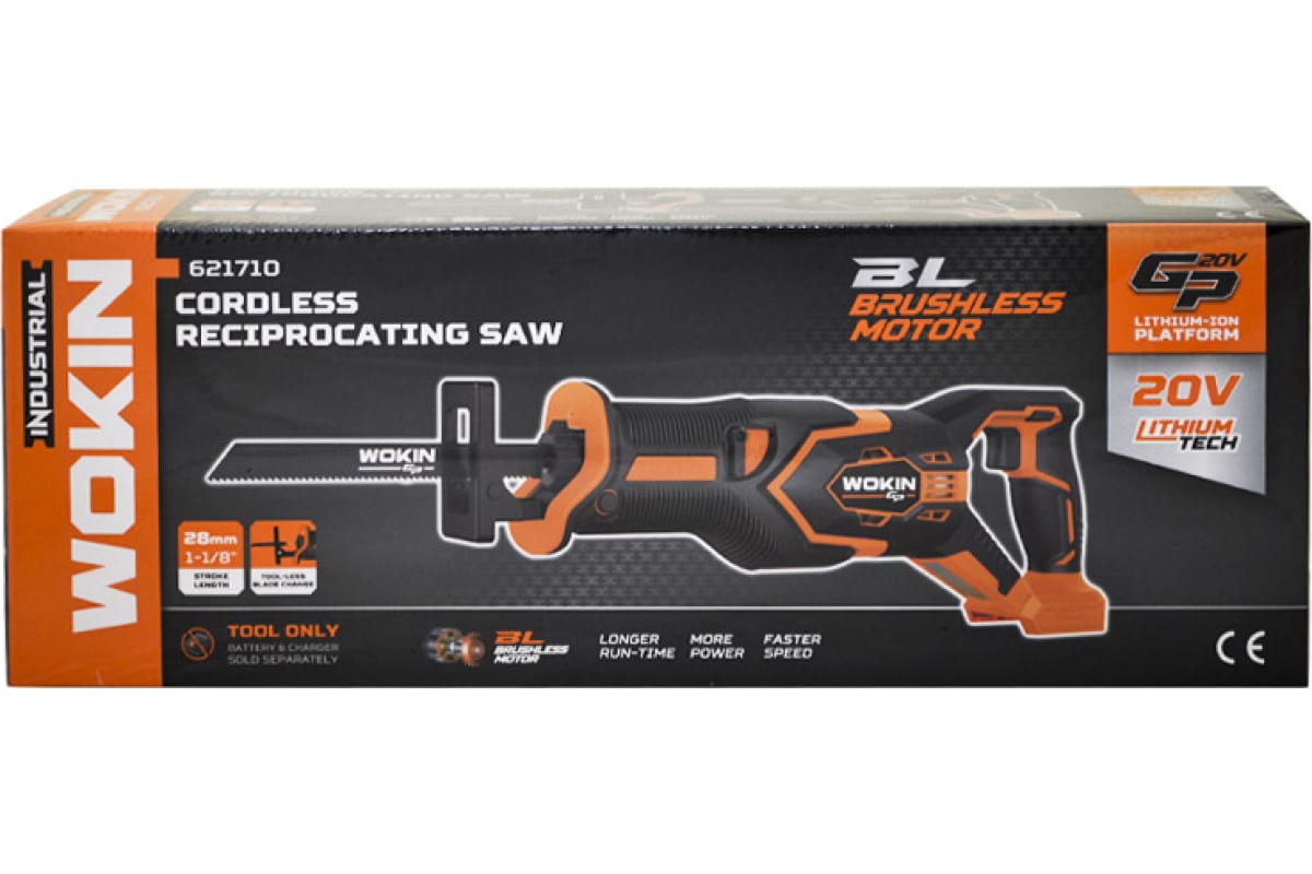 Профессиональная аккумуляторная сабельная пила от фирмы WOKIN служит для распила разнообразных материалов - древесины разной плотности, изделий из пластика, металла, строительных материалов. Глубина распила дерева составляет 150 мм, глубина распила стали составляет 10 мм. Длинный ход пилки, 28 мм, увеличивает скорость реза. Число ходов на холостом ходу 0-3000.Пила имеет бесщеточный двигатель, что значительно продлевает срок службы инструмента. Встроенная светодиодная подсветка облегчает работу в местах с недостаточным освещением. Тип питания - аккумулятор с напряжением питания 20 В. Замена лезвия без использования дополнительного инструмента существенно экономит время работы. Электронный ограничитель тока надежно защищает от перегрузки. Эргономичная рукоятка пилы облегчает использование инструмента и комфортно располагается в руке.Одобрена СЕ.