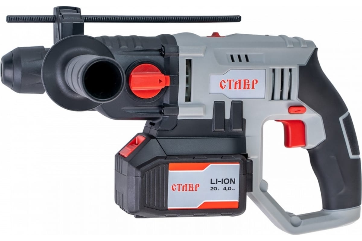 Аккумуляторный горизонтальный перфоратор Ставр ст18-20паг оснащен индикатором уровня заряда.