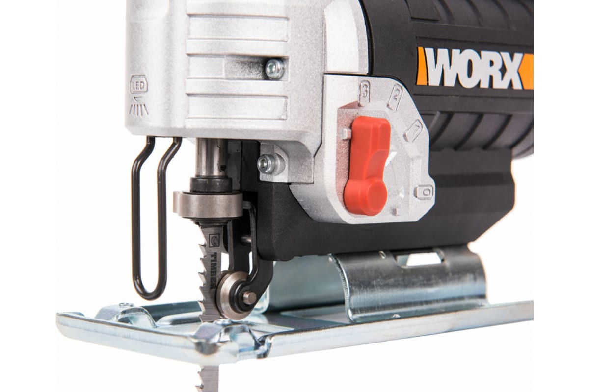 Обеспечивает переменную скорость полотна до 2600 оборотов в минуту, позволяя контролировать процесс пиления дерева, пластика или металла.