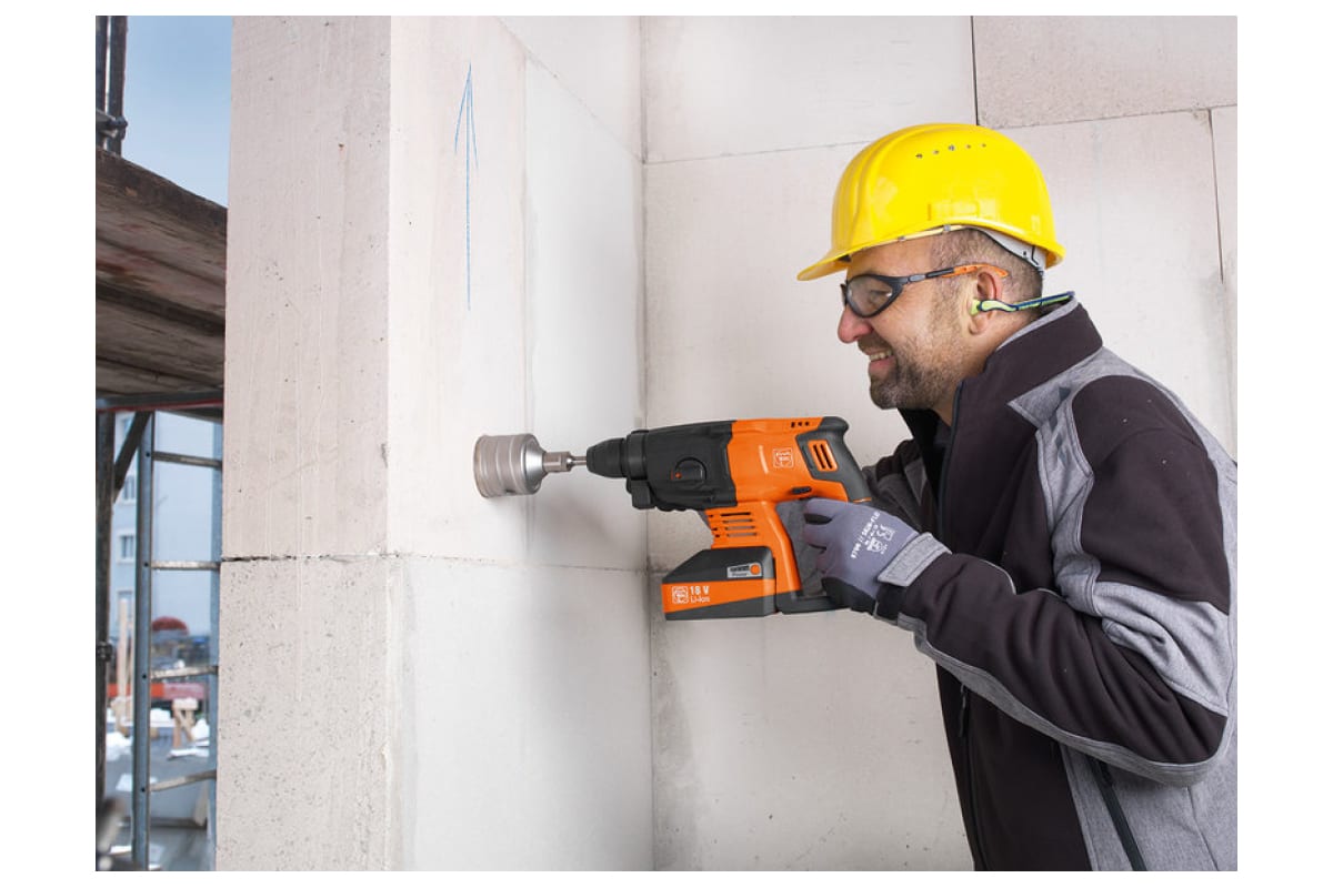Технология защиты элементов FEIN SafetyCell Technology защищает от перегрузки, перегрева и полной разрядки, что увеличивает срок службы перфоратора.