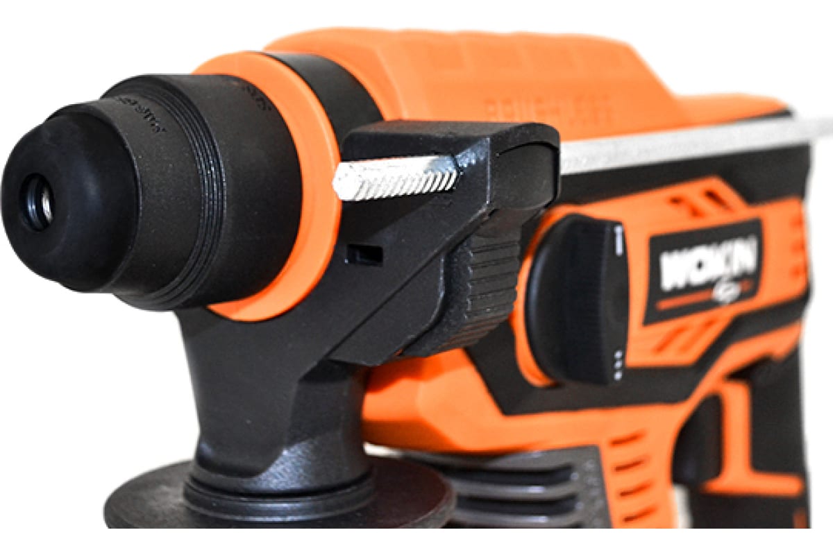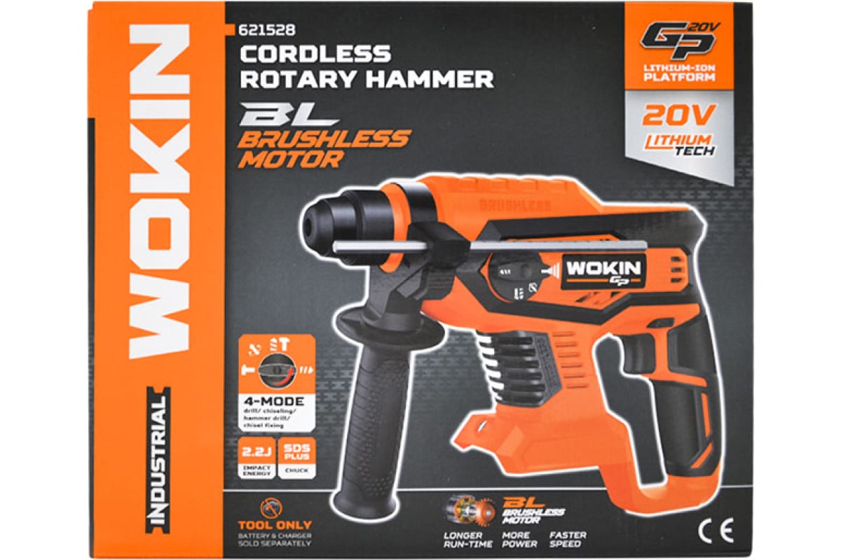Надежный перфоратор от фирмы WOKIN с силой удара 2.2 Дж – превосходный помощник для просверливания отверстий в различных материалах (дерево, бетон, кирпич, сталь и т.д.). Данная модель без труда просверливает отверстия в бетоне диаметром 22 мм, в стали - 13 мм и дереве - 28 мм. Имеет 4 режима работы: сверление, долбление, сверление с ударом, фиксация долота. Скорость удара инструмента составляет 4700 ударов в минуту, а скорость сверления составляет 1400 об/мин. Также есть реверс. SDS-plus патрон упрощает замену оснастки. Перфоратор оснащен светодиодной подсветкой для освещения рабочей зоны и большей видимости при работе в местах с недостаточным освещением. Эргономичная мягкая ручка удобно ложится в руку, а благодаря дополнительной боковой ручке инструмент не выскальзывает и облегчает работу. Замечательная сбалансированность важных функций помогут без труда справиться с работой любой сложности.