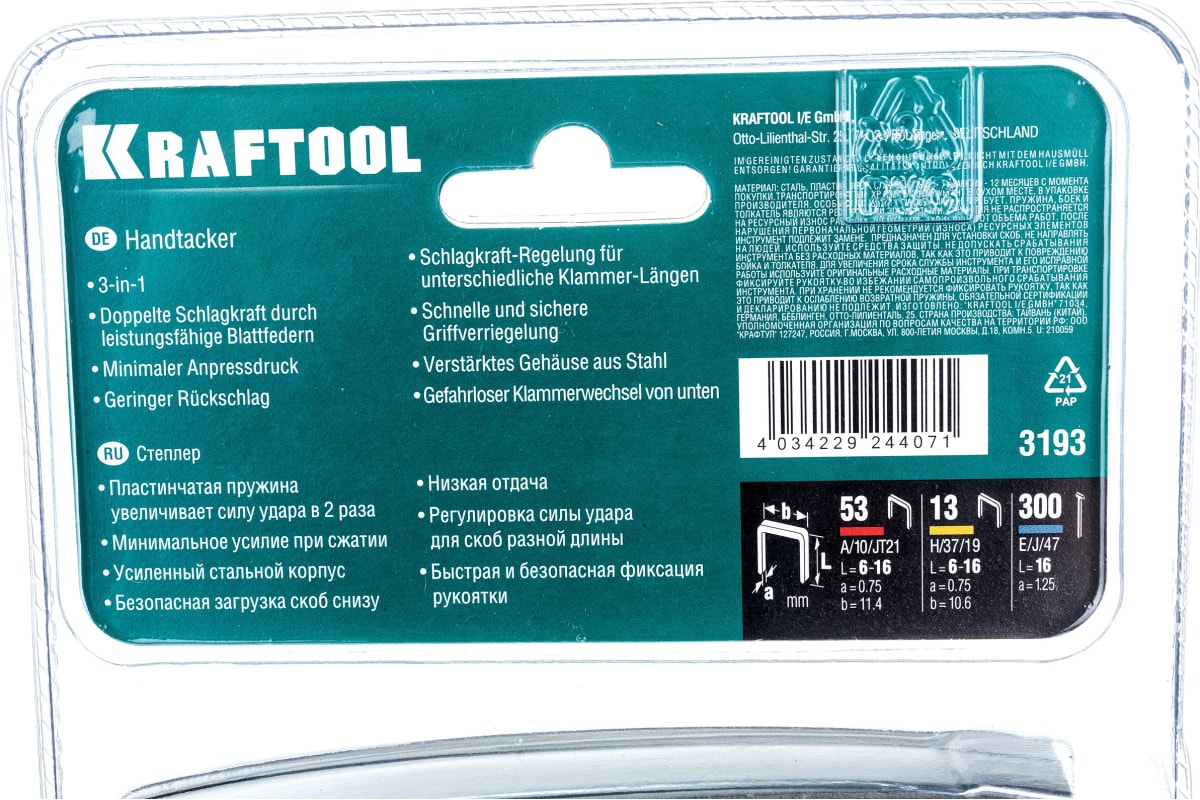 Алюминиевый степлер KRAFTOOL Grand-53 тип 53, 13, 300 3193 представляет собой профессиональный мощный стальной степлер с ударным механизмом рессорного типа.
