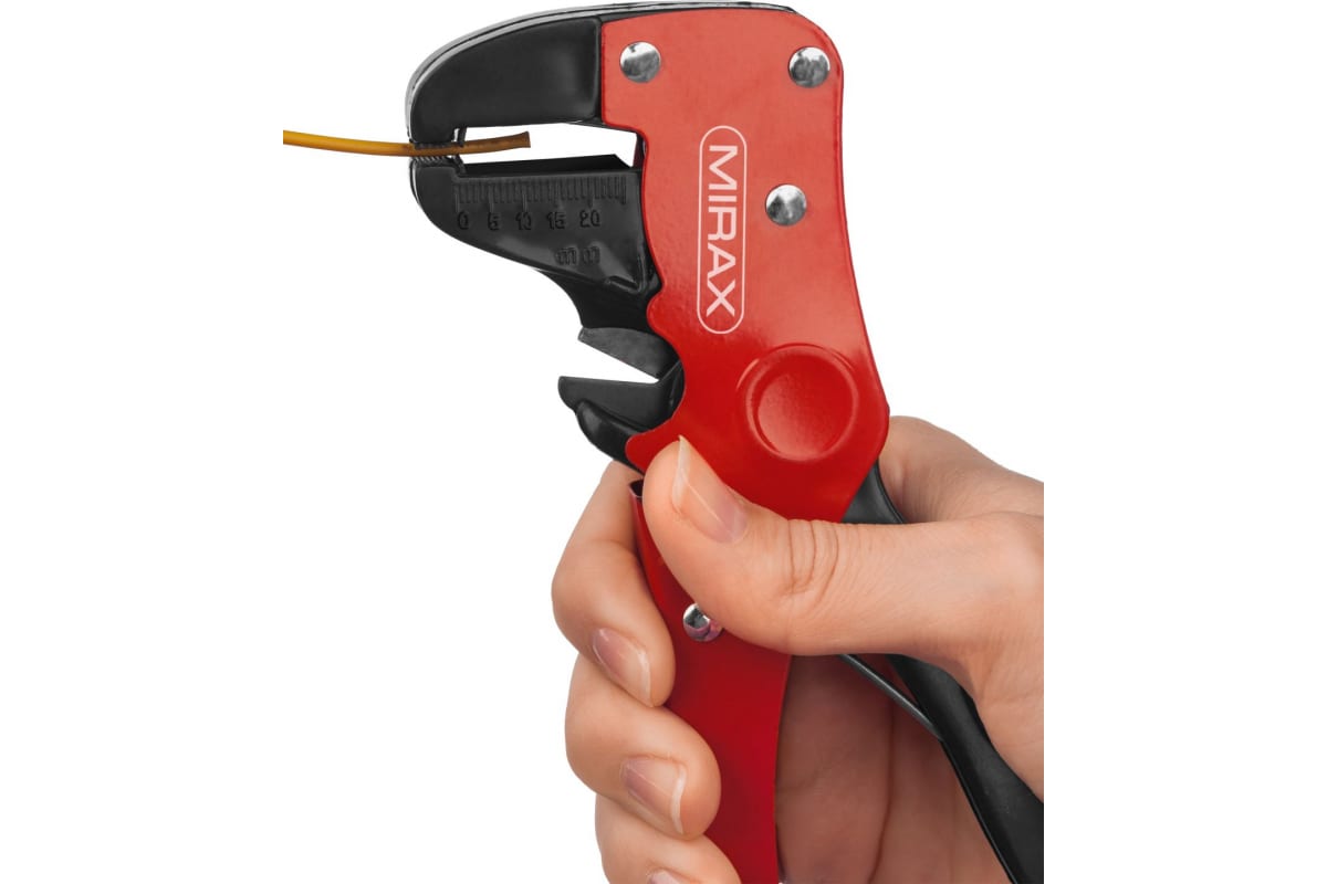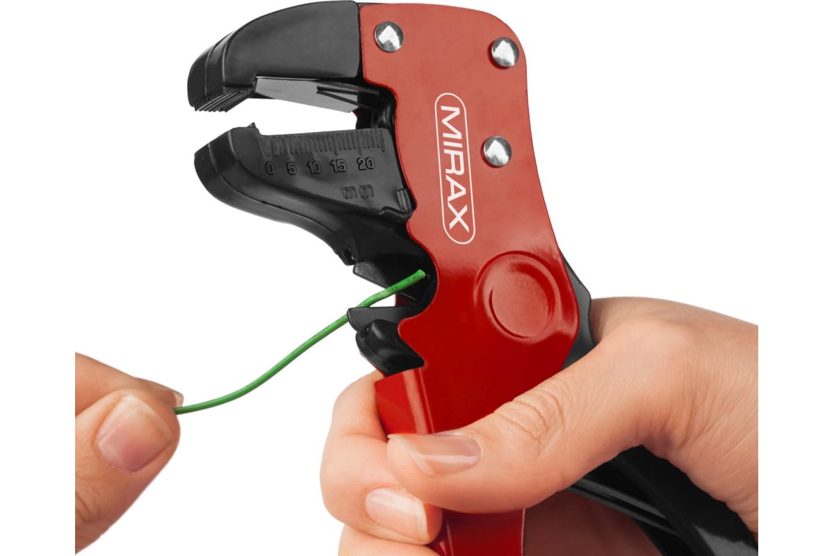 Автоматический стриппер MIRAX 0.5-2.5 мм2 22638 используется для работы с проводами различной толщины. Широкие лезвия обеспечивают высокое качество снятия изолирующего слоя с провода без повреждения жил внутри. Металлический инструмент обеспечивает высокую прочность.
