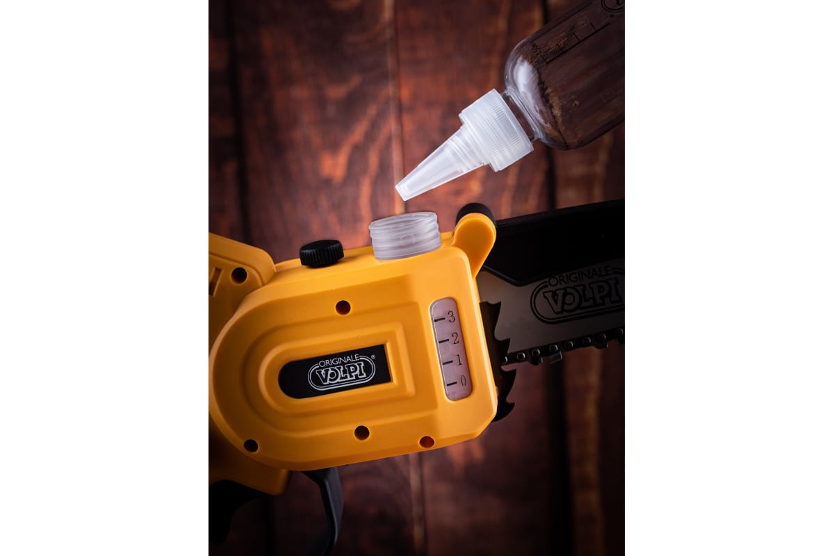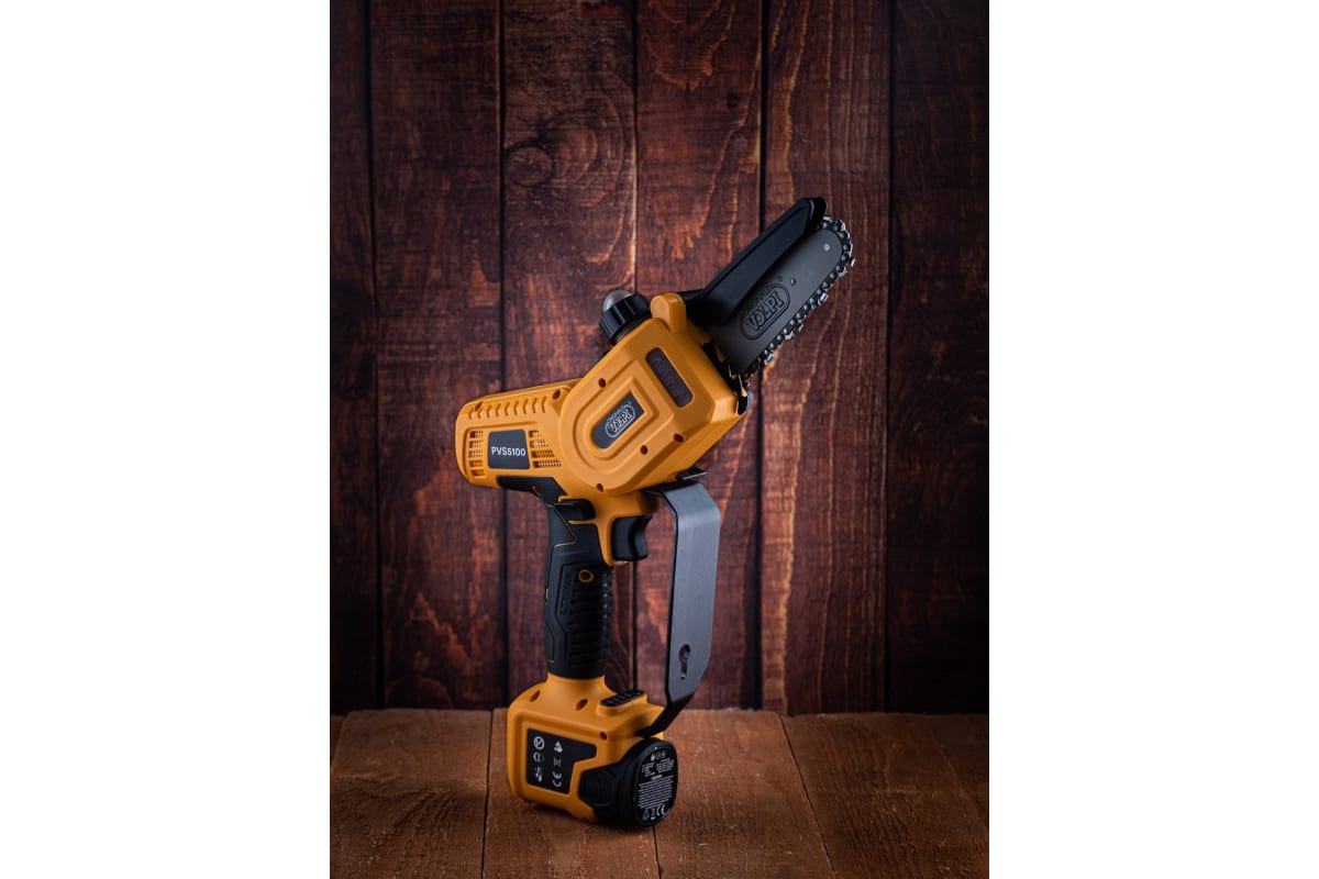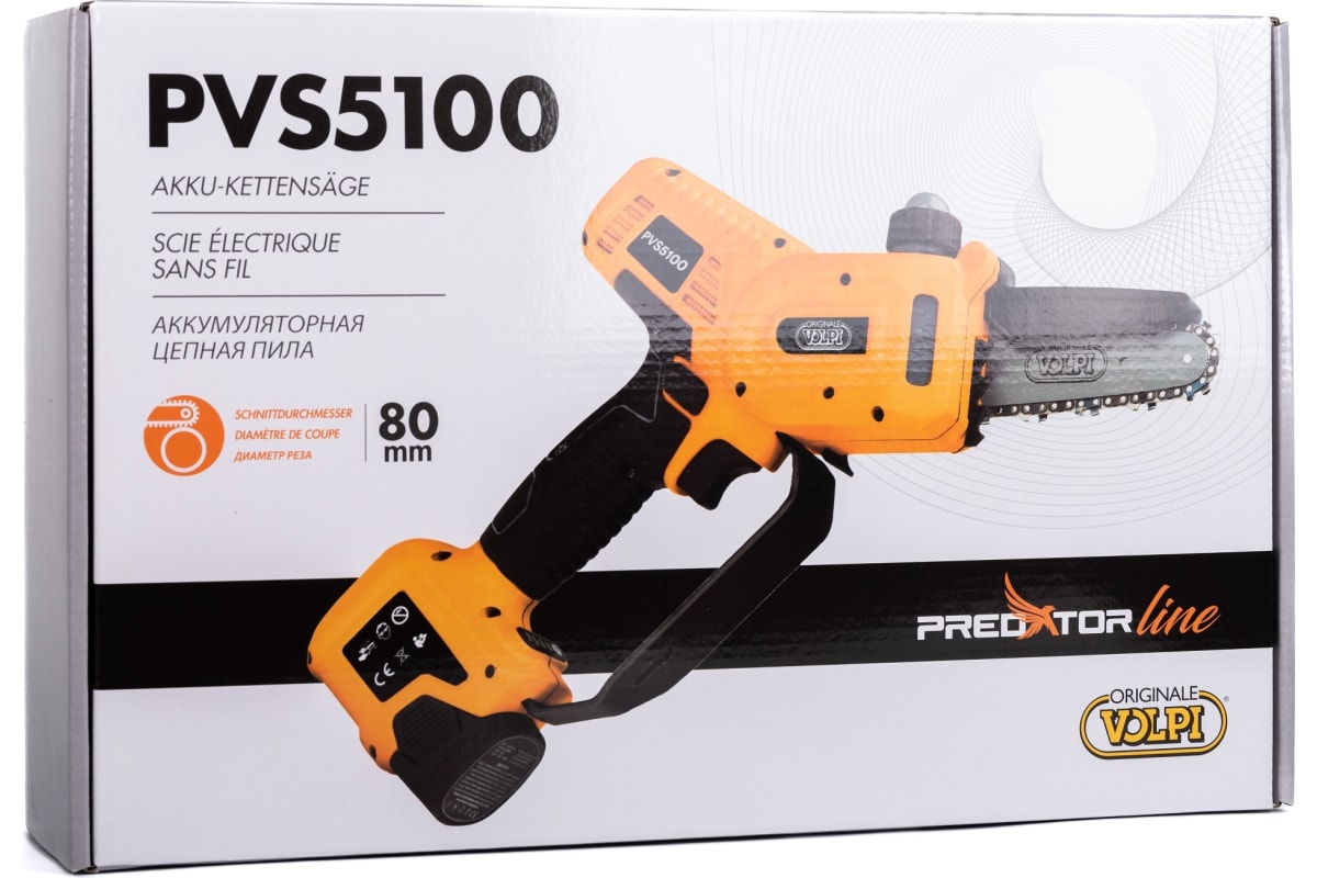 Беспроводная аккумуляторная цепная пила Volpi originale predator функция подачи масла на цепь PVS5100 идеально подходит для столярных работ, обрезки кустов и деревьев. Толщина реза составляет 80 мм.