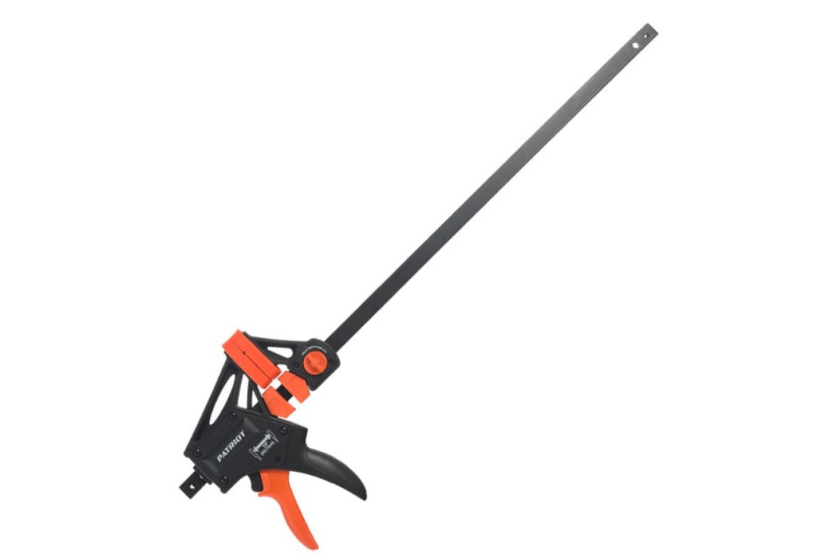 Быстрозажимная усиленная струбцина 450мм PATRIOT Platinum QRP-450P 350006510 оснащена простым зажимным механизмом с курком. Это обеспечивает высокую скорость при серийной обработке деталей.
