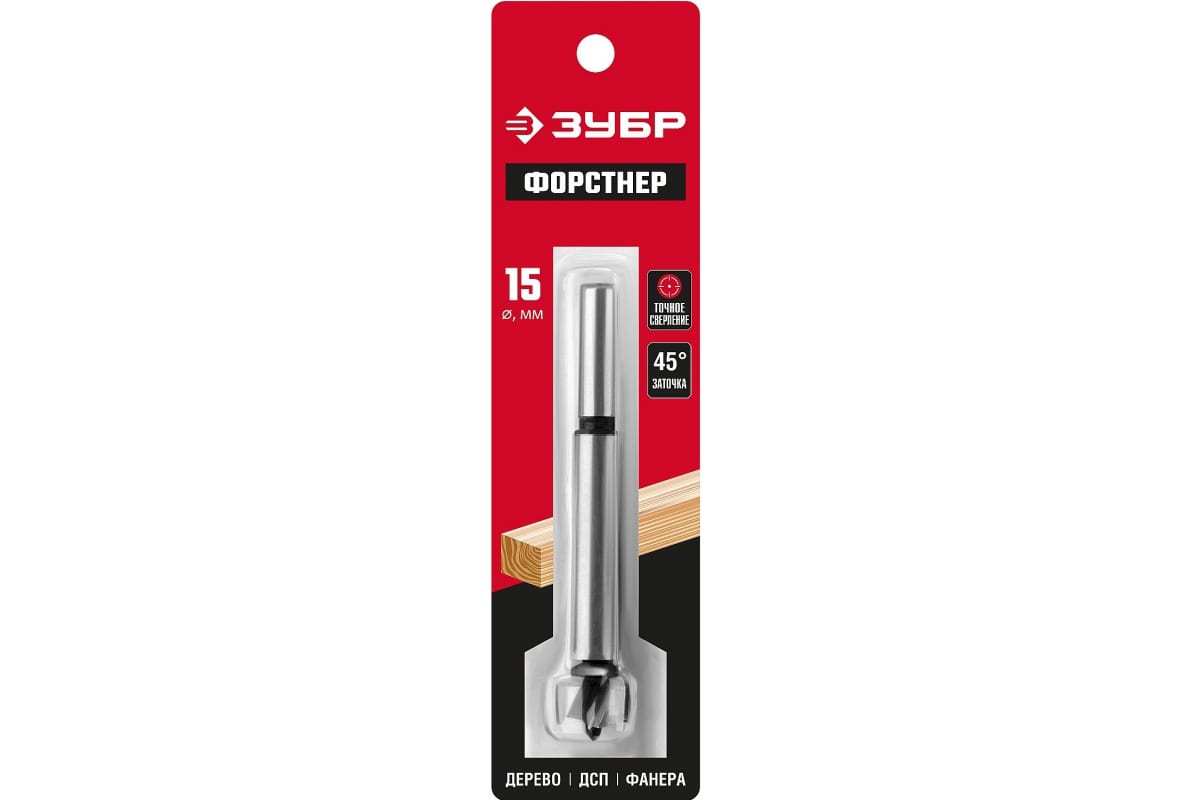 Сверло Форстнера ЗУБР 2993-15_z01 предназначено для электрических дрелей и шуруповертов. Применяется для выполнения глухих и сквозных отверстий повышенной точности в древесине, фанере, ДСП, клееных щитах и пластмассе, что отлично подходит для монтажа мебельной фурнитуры.
