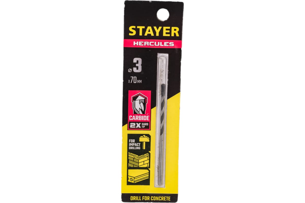 Cверло по бетону STAYER Hercules 3x70 мм 2915-070-03_z01 предназначено для работ по бетону, граниту, природному и искусственному камню, кирпичной кладке. Имеет высокую производительность и увеличенный рабочий ресурс.