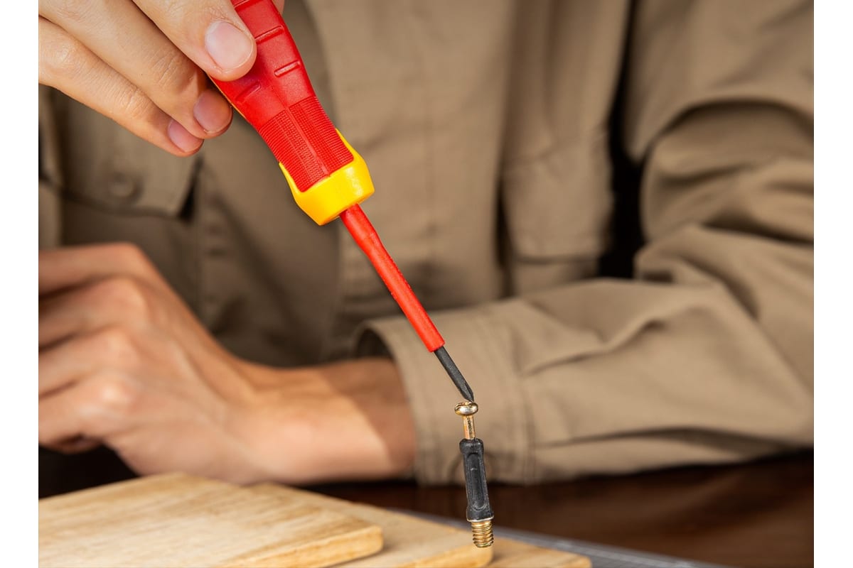 Отвертка обладает сертификатом VDE и выдерживает напряжение до 1кВ.