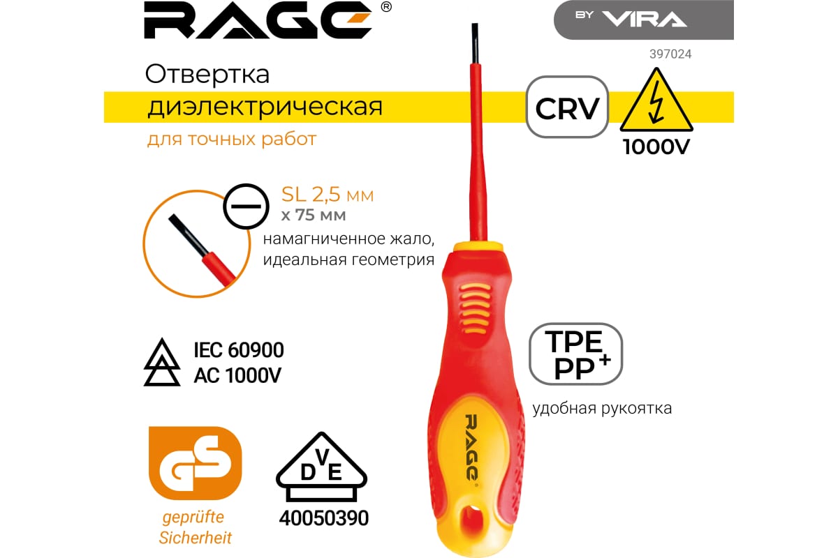Отвертка сертифицирована немецкими стандартами качества VDE и GS. Знак VDE (Verband Deutscher Elektrotechniker), что является документальным подтверждением безопасности электроинструмента.