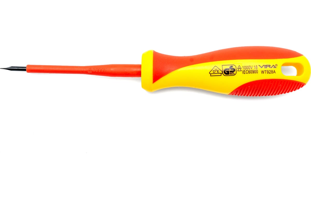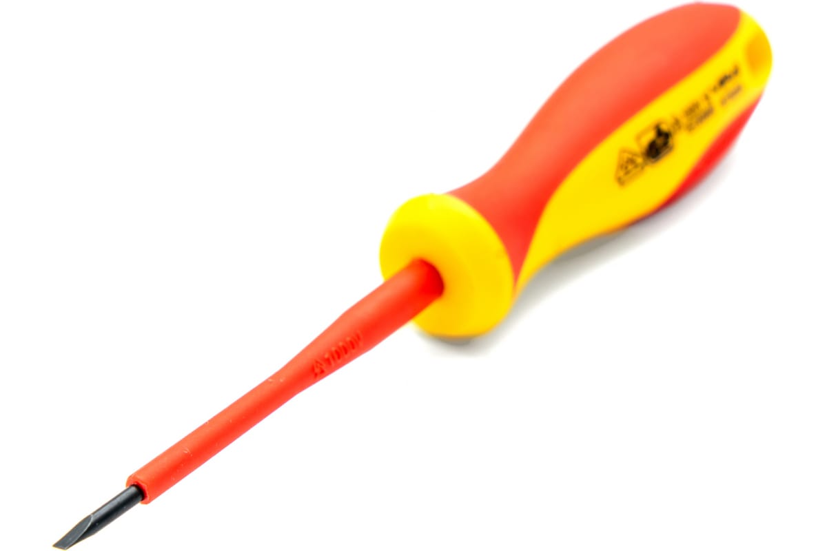 Диэлектрическая отвертка — это ручной инструмент, применяемый для откручивания и закручивания резьбовых крепежей, имеющих на головке шлиц, находящихся под электрическим напряжением или в близи проводников, находящихся под напряжением.