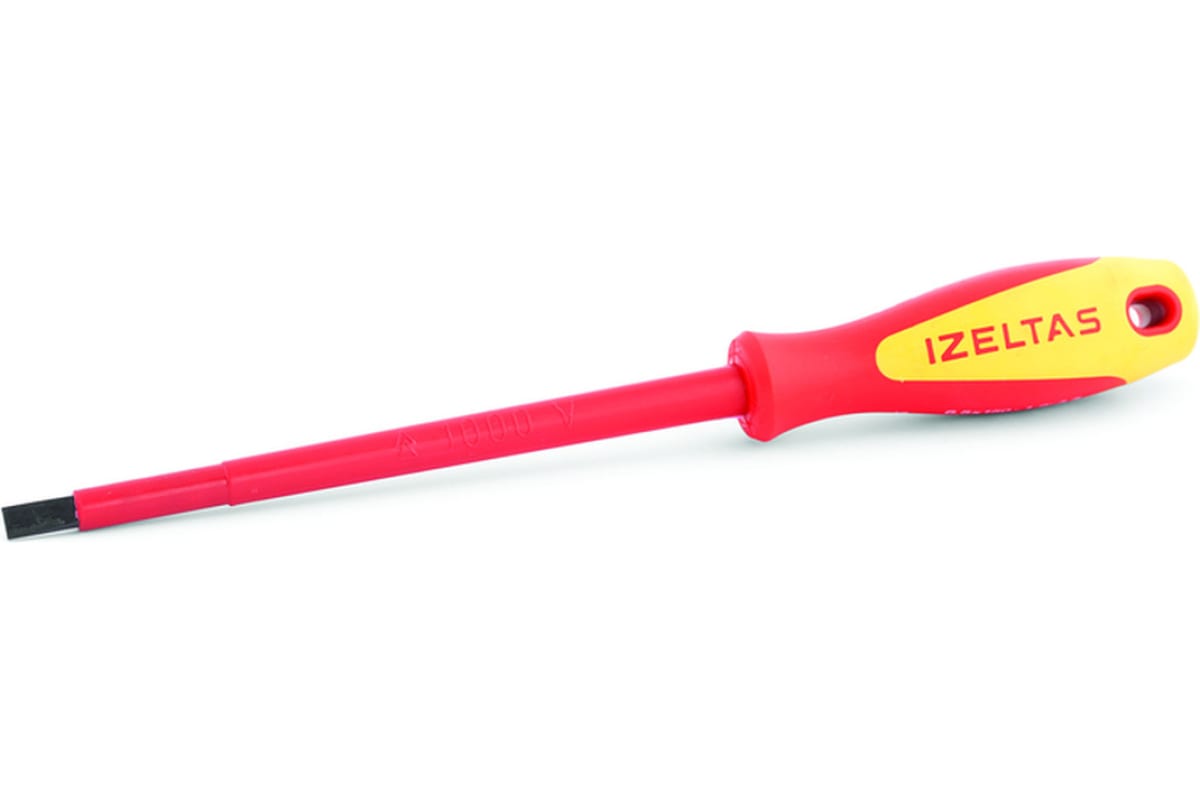 Диэлектрическая отвёртка изготовлена из сверхпрочной стали MoV. Наконечник покрыт чёрной оксидной плёнкой. Длина 220 мм. Соответствует стандартам IEC 60900.