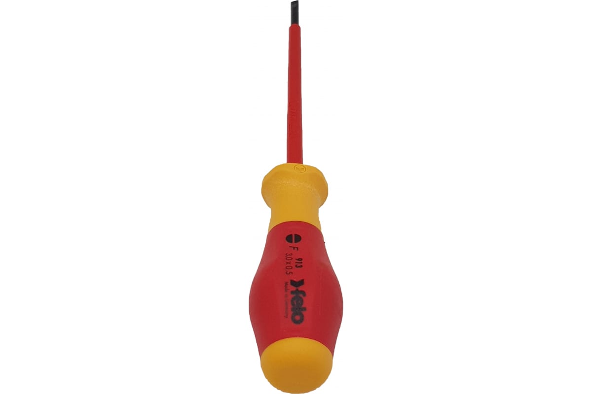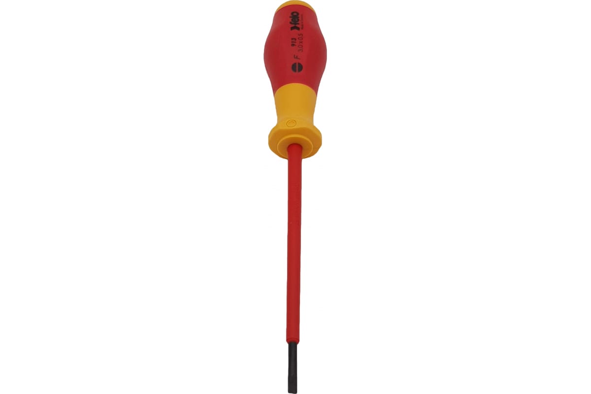 Диэлектрическая шлицевая отвертка Felo SL3,0 91303090 предназначена для проведения электромонтажных и ремонтных работ в электроустановках под напряжением до 1000 Вольт с крепежом сечением типа SL 3,0.