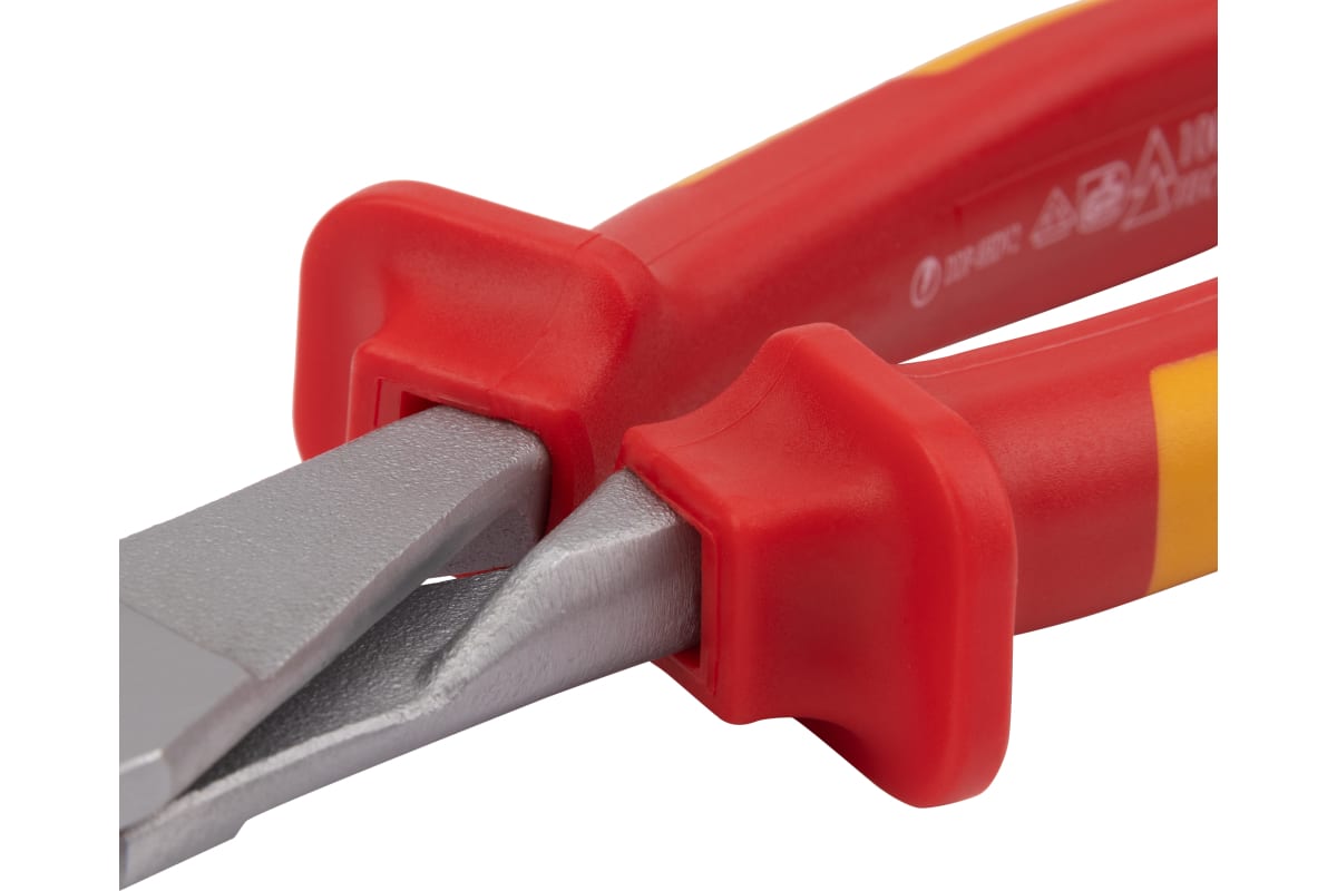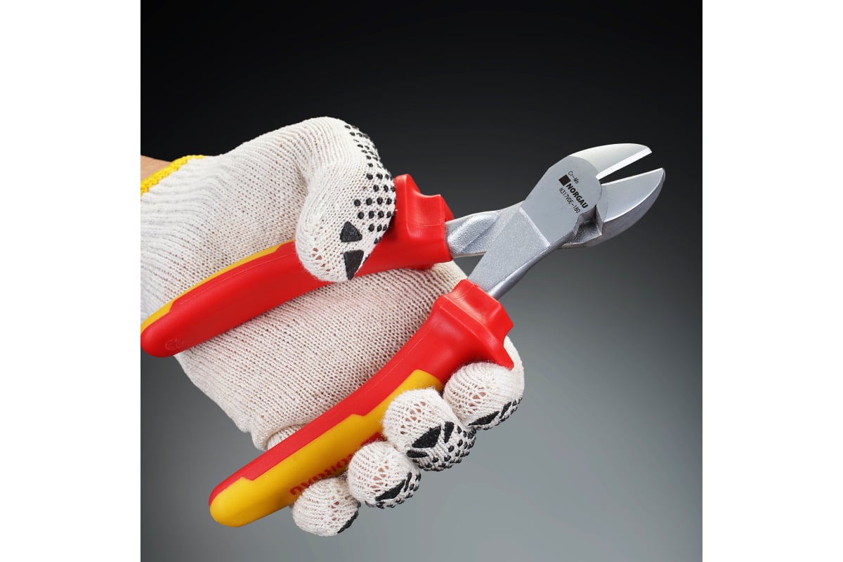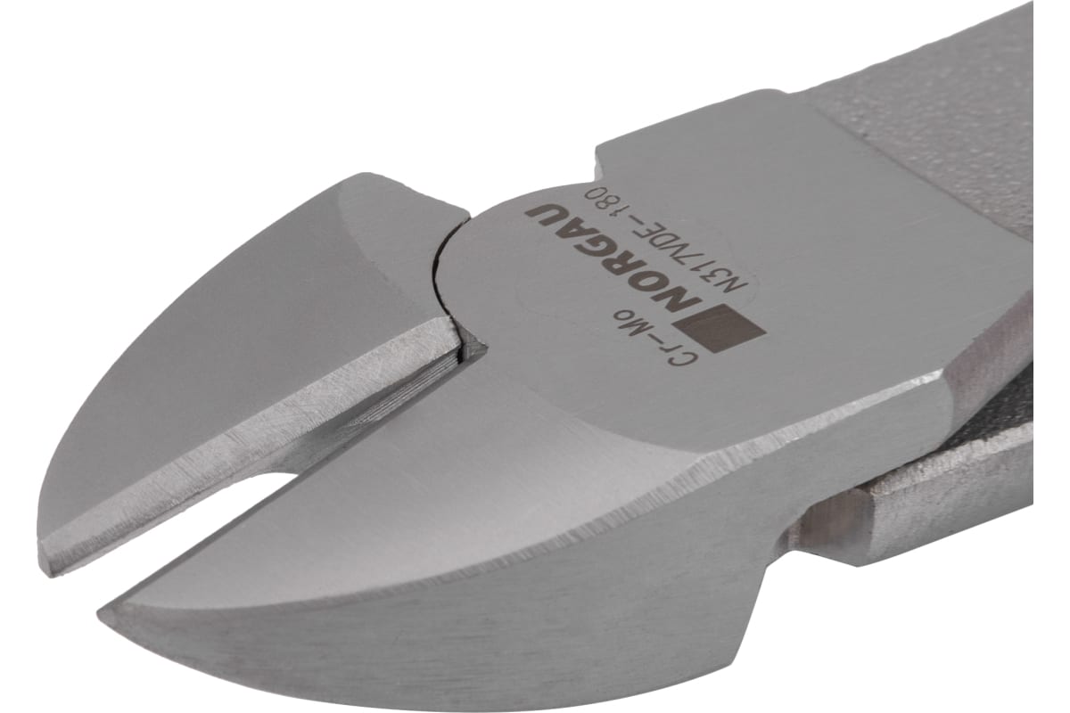Диэлектрические бокорезы NORGAU N317VDE-180 силовые 180 мм, 1000В 067291118 незаменимы при резке мягкой и твердой проволоки под напряжением до 1000В. Могут использоваться как в быту, так и в промышленности благодаря индукционной закалке режущих кромок. Двухкомпонентные рукоятки обеспечивают надежную фиксацию инструмента в руке, что гарантирует удобство в работе. Упоры исключают соскальзывание руки в рабочую зону, повышая безопасность.