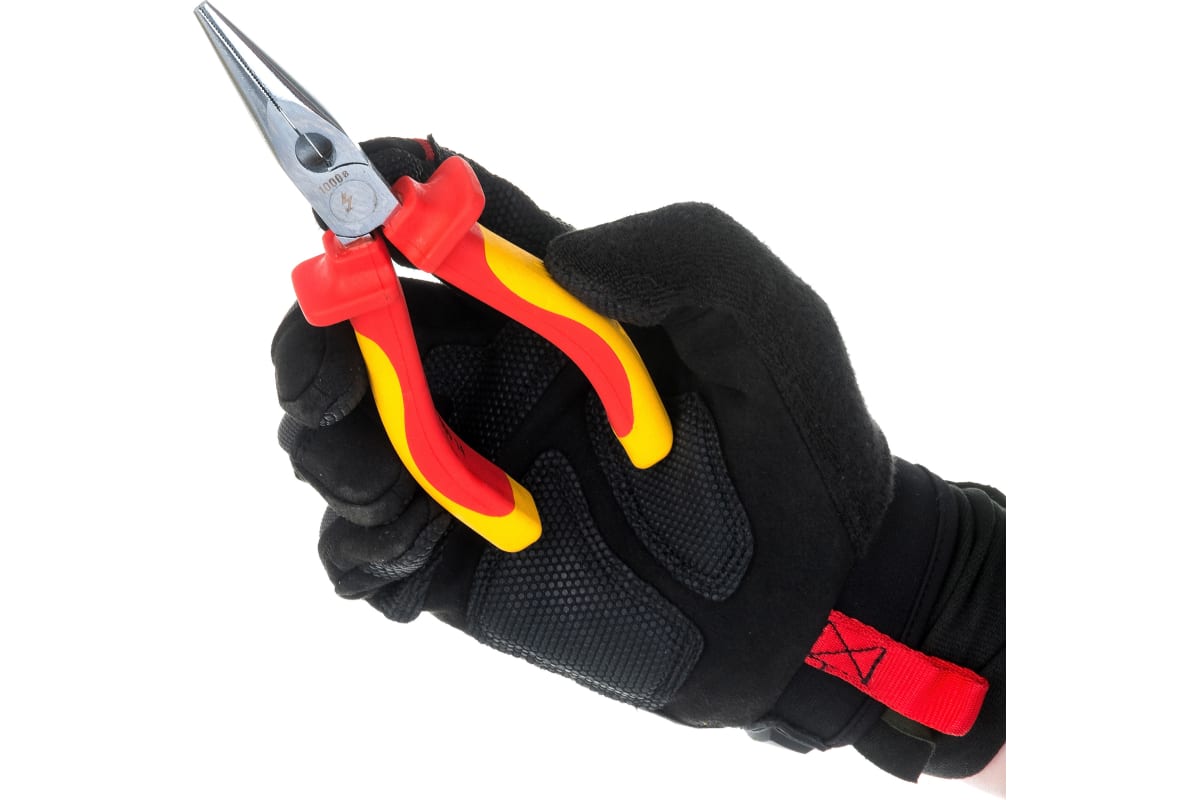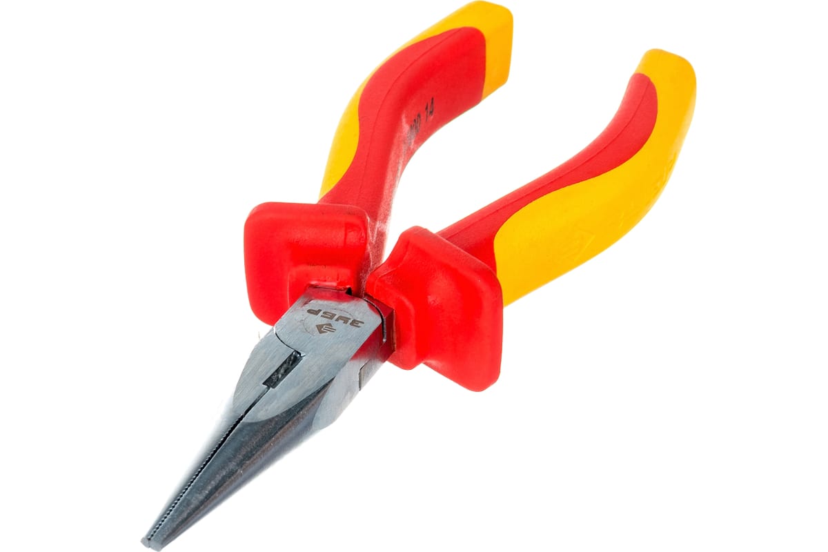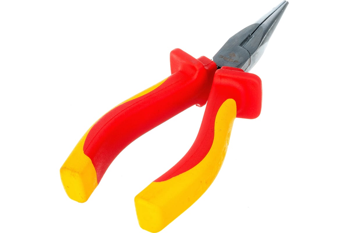 Диэлектрические тонкогубцы до1000В, 160мм Зубр ЭКСПЕРТ ЭЛЕКТРОМОНТАЖНИК 22145-3-16 обладают двойной электроизоляцией. Модель подойдет для сложных монтажных и демонтажных работ в электроцепях.