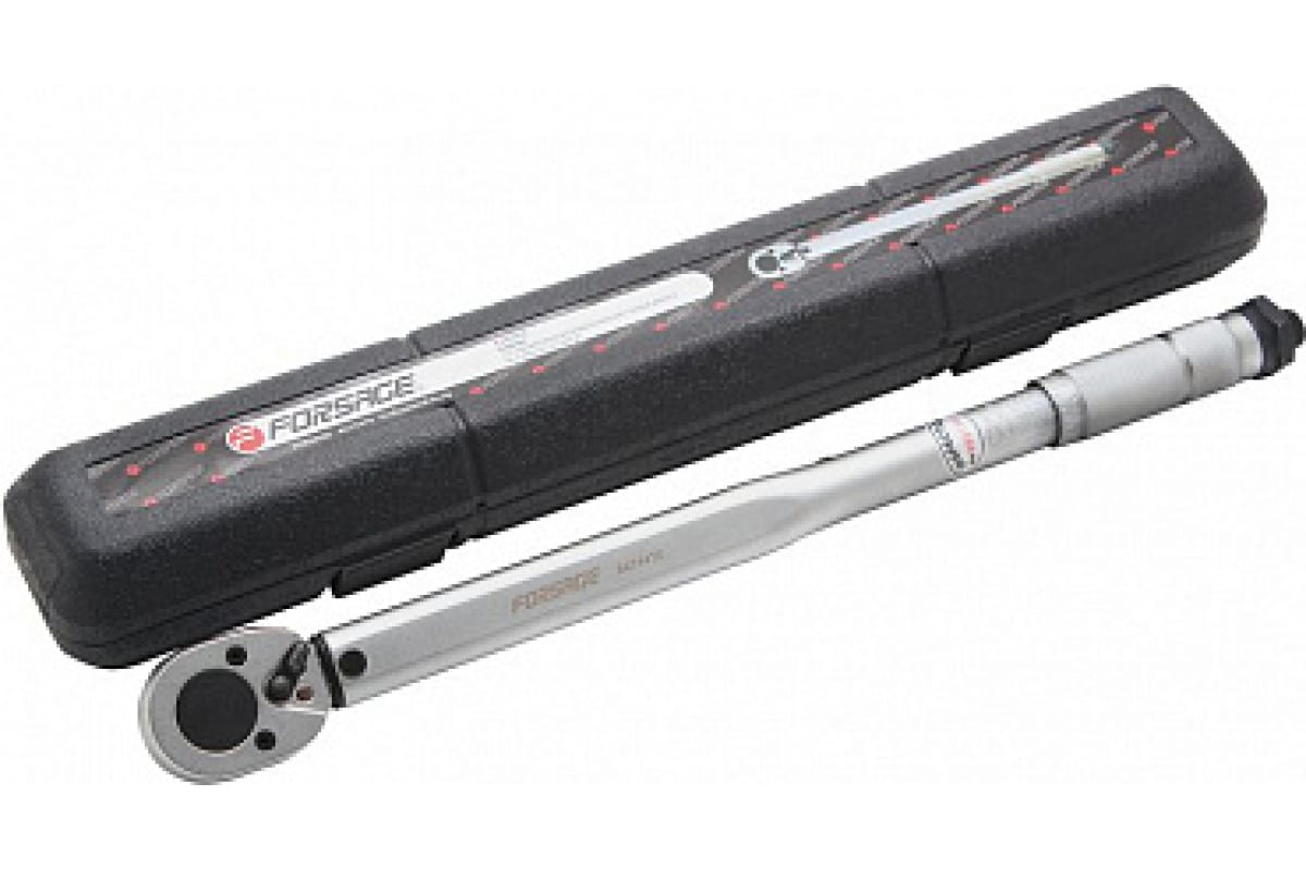 Динамометрический ключ Forsage 28-210Нм, 1/2" 1474 F-6474470T поставляется в прочном кейсе, который обеспечивает безопасность переноски. Инструмент легко настроить, а для хранения имеется паз.