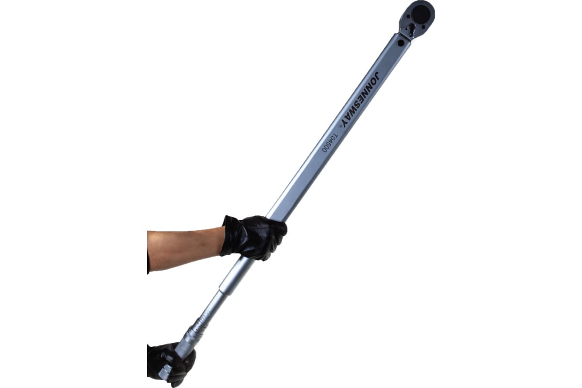 Динамометрический ключ 3/4"DR Jonnesway T04500 (Т04М500) закручивает резьбовые соединения с крутящим моментом от 100 до 700 Нм. Профессиональный ключ используется в автомастерских. Рифленая стальная рукоятка обеспечивает надежный хват.