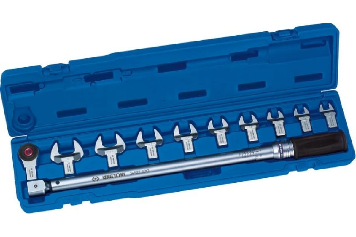 - Погрешность динамометрического ключа с набором рожковых насадок (1/2", 13-30 мм, 40-200 Нм, кейс) KING TONY 345202D11MR не более 3%.