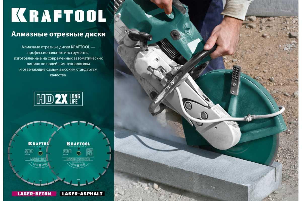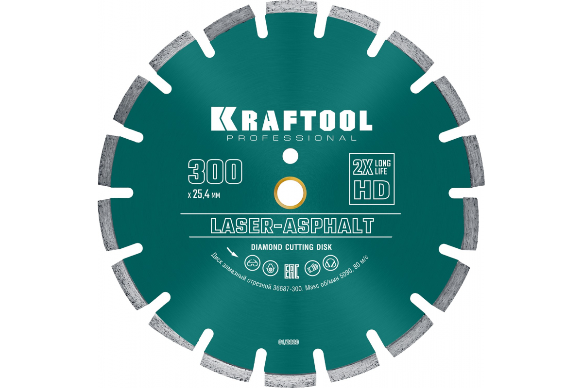 Диск алмазный отрезной по асфальту KRAFTOOL Laser-aphsfalt (300х25.4/20 мм, 10х3.2 мм) 36687-300 имеет технологию LWB (Laser Welded Blades) которая гарантирует надежную работу инструмента даже при высоких нагрузках и без применения охлаждения. Луч лазера проваривает стык между алмазным сегментом и стальным закаленным корпусом, образуя прочный монолитный шов.