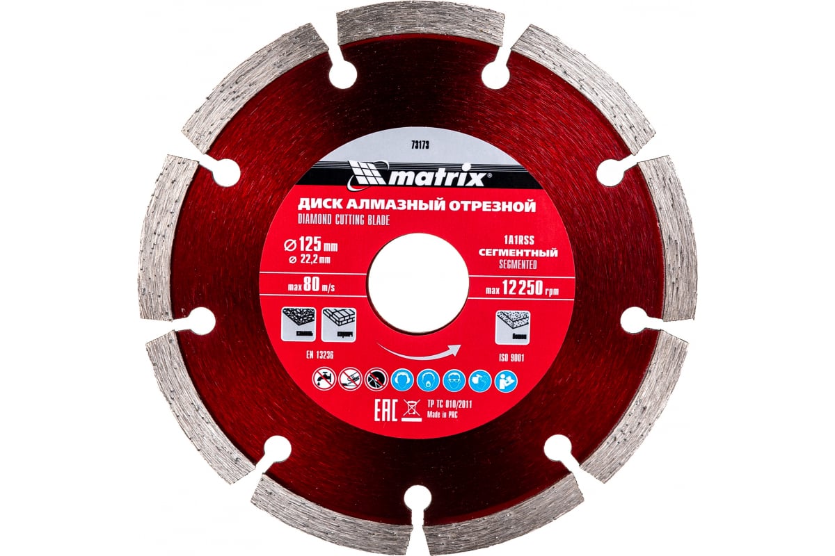 Отрезной алмазный диск Matrix 73173, 125 х 22,2 мм, предназначен для сухой резки натурального и искусственного камня, кирпича, свежего и твердого бетона. Он применяется с углошлифовальными машинами соответствующего типоразмера. Благодаря высокой скорости реза диск позволяет выполнять работы большого объема. Он пригодится на небольших строительных площадках и будет идеальным помощником при решении бытовых задач.