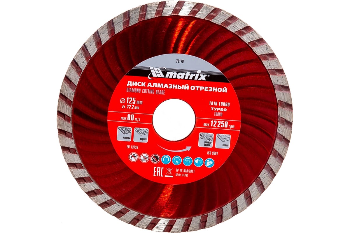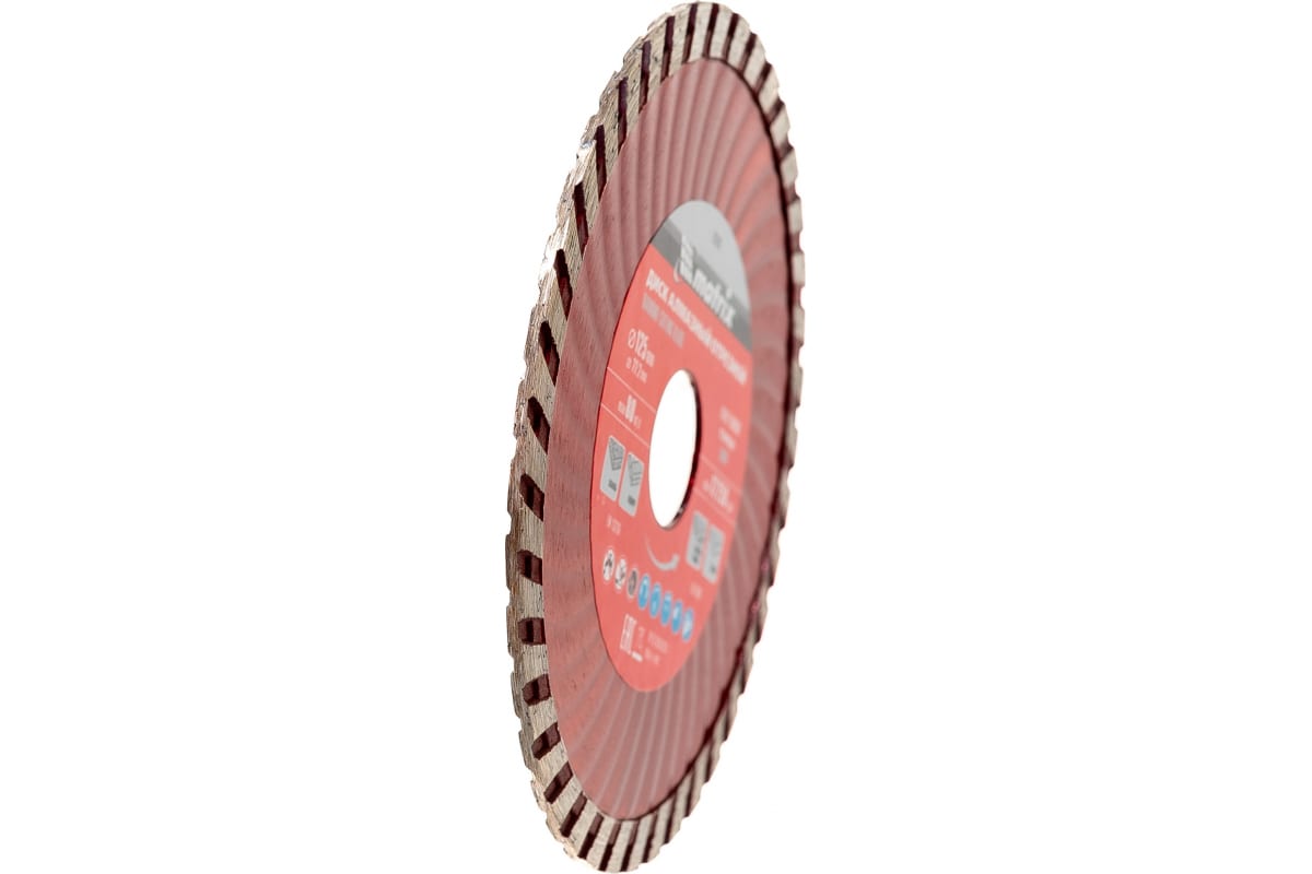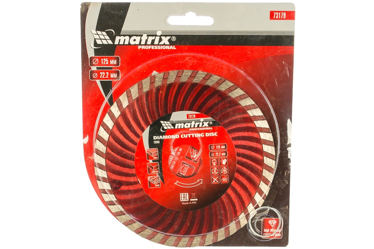 Алмазный отрезной диск Turbo Matrix 73179 является сменным элементом для угловых шлифмашин. Предназначен для реза бетона, железобетона и мрамора. Волнообразная форма металлического основания способствует максимально быстрому удалению продуктов пиления, улучшенному охлаждению и снижению нагрузки на УШМ. Диск предназначен для сухой резки.