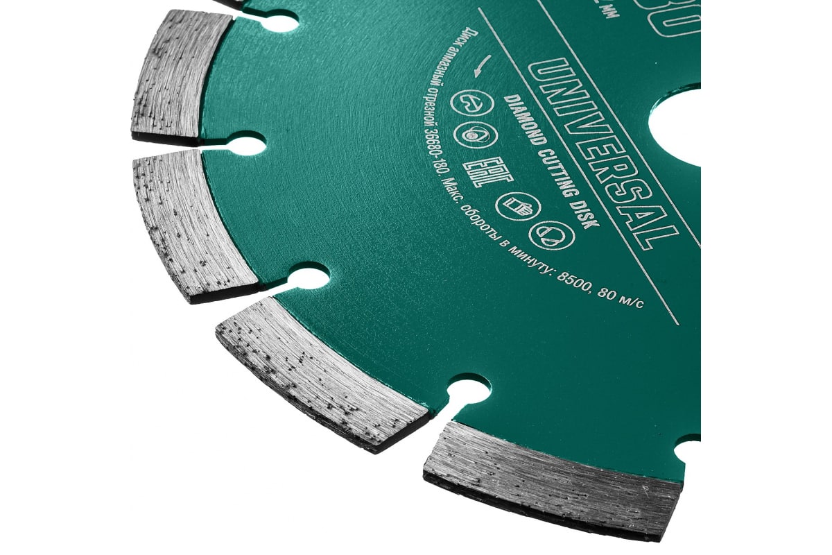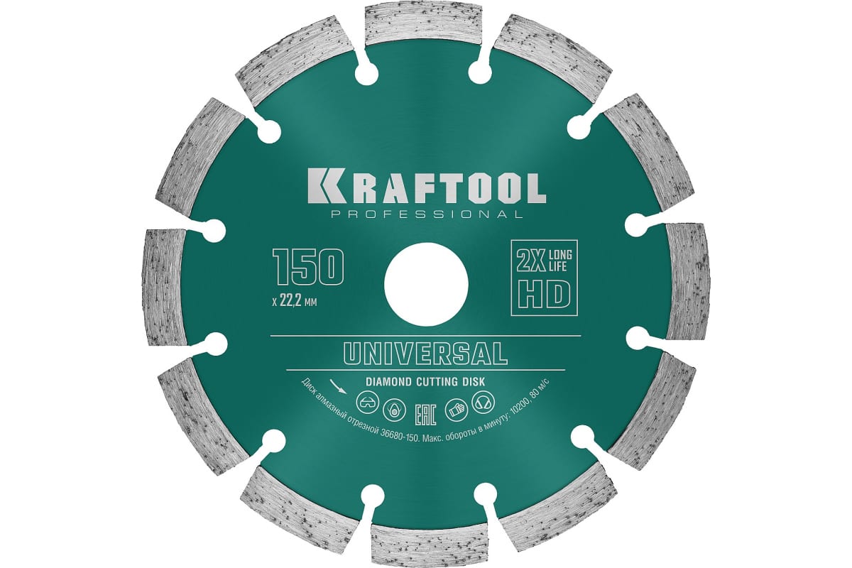 Диск алмазный сегментный Universal KRAFTOOL 36680-150 предназначен для резки бетона и железобетона с помощью угловой шлифовальной машины.