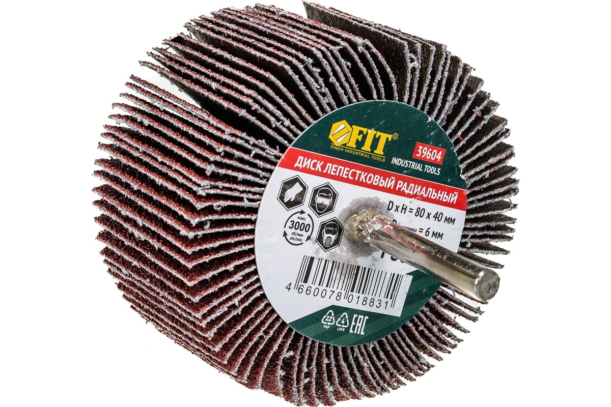 Лепестковый диск FIT IT 39604 применяется совместно с дрелями для обработки различных конструкций и деталей из стали, цветных металлов, пластмассы и древесины. Рабочая поверхность оснастки - радиально расположенные шлифовальные листы. Такое расположение лепестков обеспечивает большую площадь соприкосновения инструмента с обрабатываемой поверхностью. Данный диск подходит для чернового, промежуточного и окончательного шлифования.
