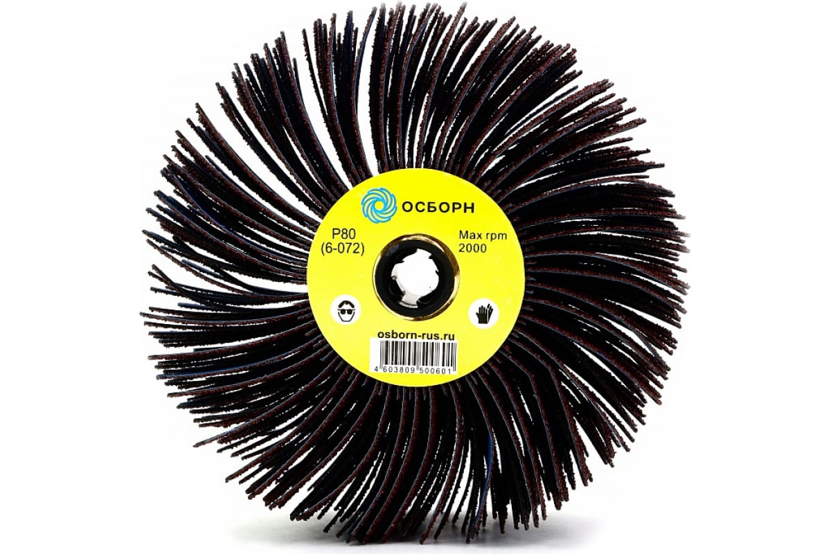 Диск лепестковый шлифовальный гибкий (118 мм; абразивная ткань P80) ОСБОРН 6-072 PLM.FD11860CP80 предназначен для выполнения операций промежуточной и чистовой шлифовки по поверхностям из дерева различных пород, металла, камня. Возможна обработка не только плоских поверхностей, но и сложных с небольшим перепадом высот. Подходит к любым дрелям при использовании специального адаптера.