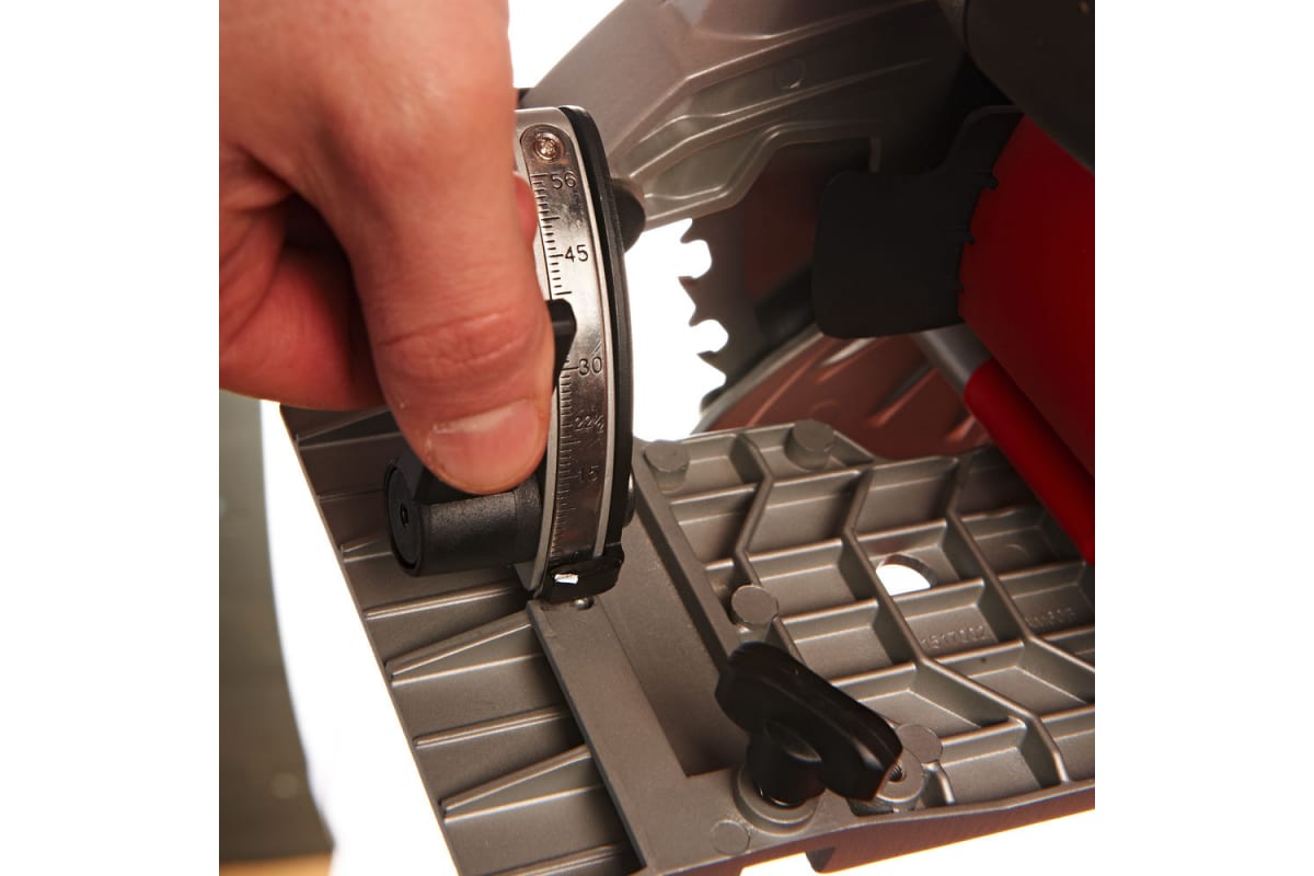 Платформа имеет регулируемый механизм, позволяющий пилить под углом от вертикали.