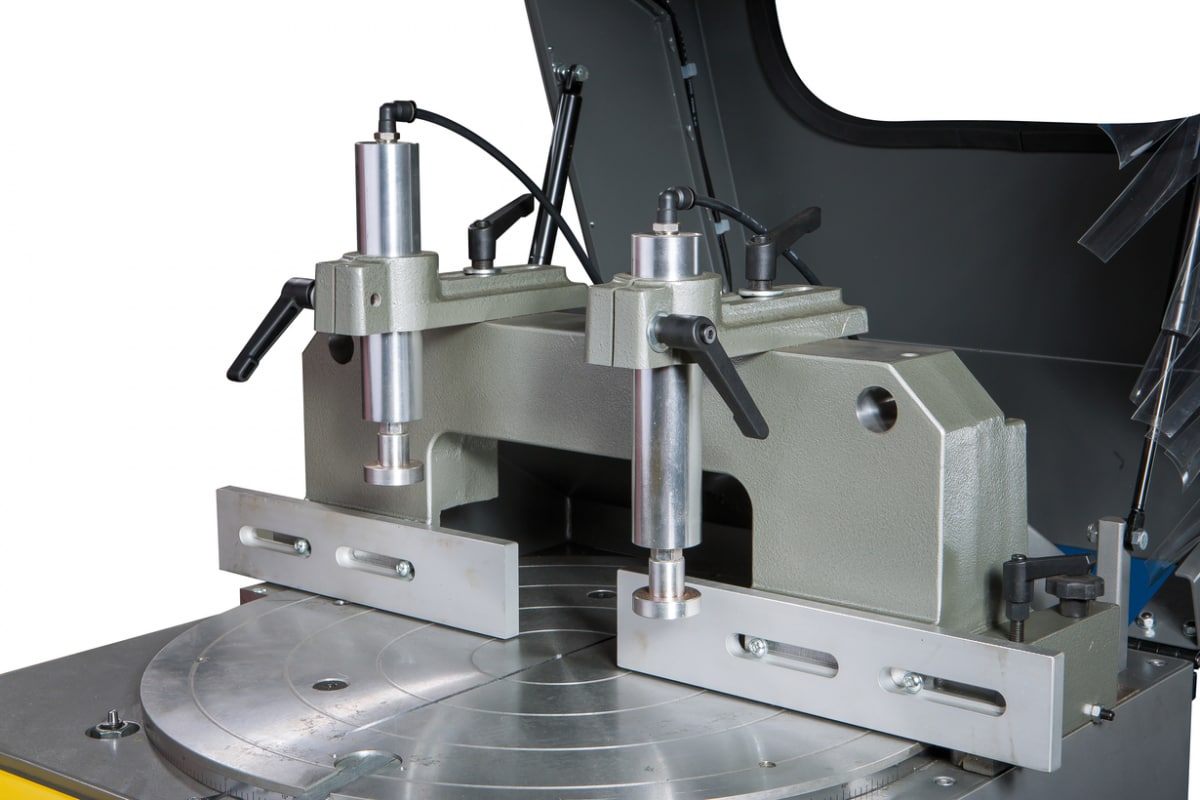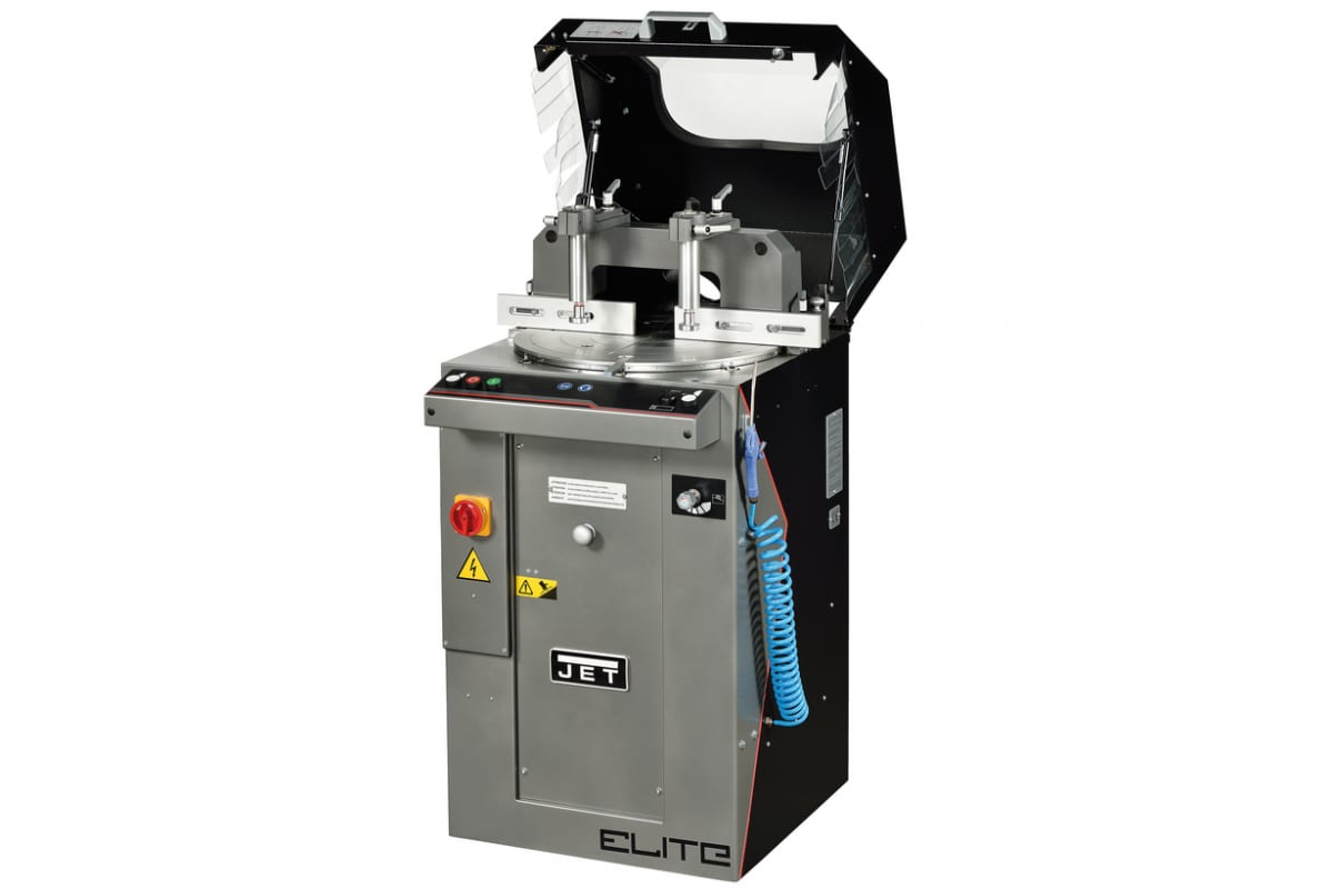 Дисковый отрезной станок для алюминия JET EVC-400DGSP (400 В) размещается на тумбе, при этом высота рабочего стола составляет 950 мм, что обеспечивает удобство установки металлической заготовки. Отличительной особенностью данного оборудования является подъем пильного диска автоматическим путем, при этом оператор самостоятельно регулирует скорость подъема в зависимости от сечения материала. Агрегат работает с такими материалами как твердый пластик или алюминий. Пневматические прижимы обеспечивают надежную фиксацию заготовок в горизонтальной и вертикальной плоскости. После окончания пиления происходит мгновенная остановка диска. Наличие системы СОЖ дает возможность выполнять распиловку в течение длительного времени. Рабочий стол изготавливается из алюминия, что гарантирует его высокую прочность и долговечность.