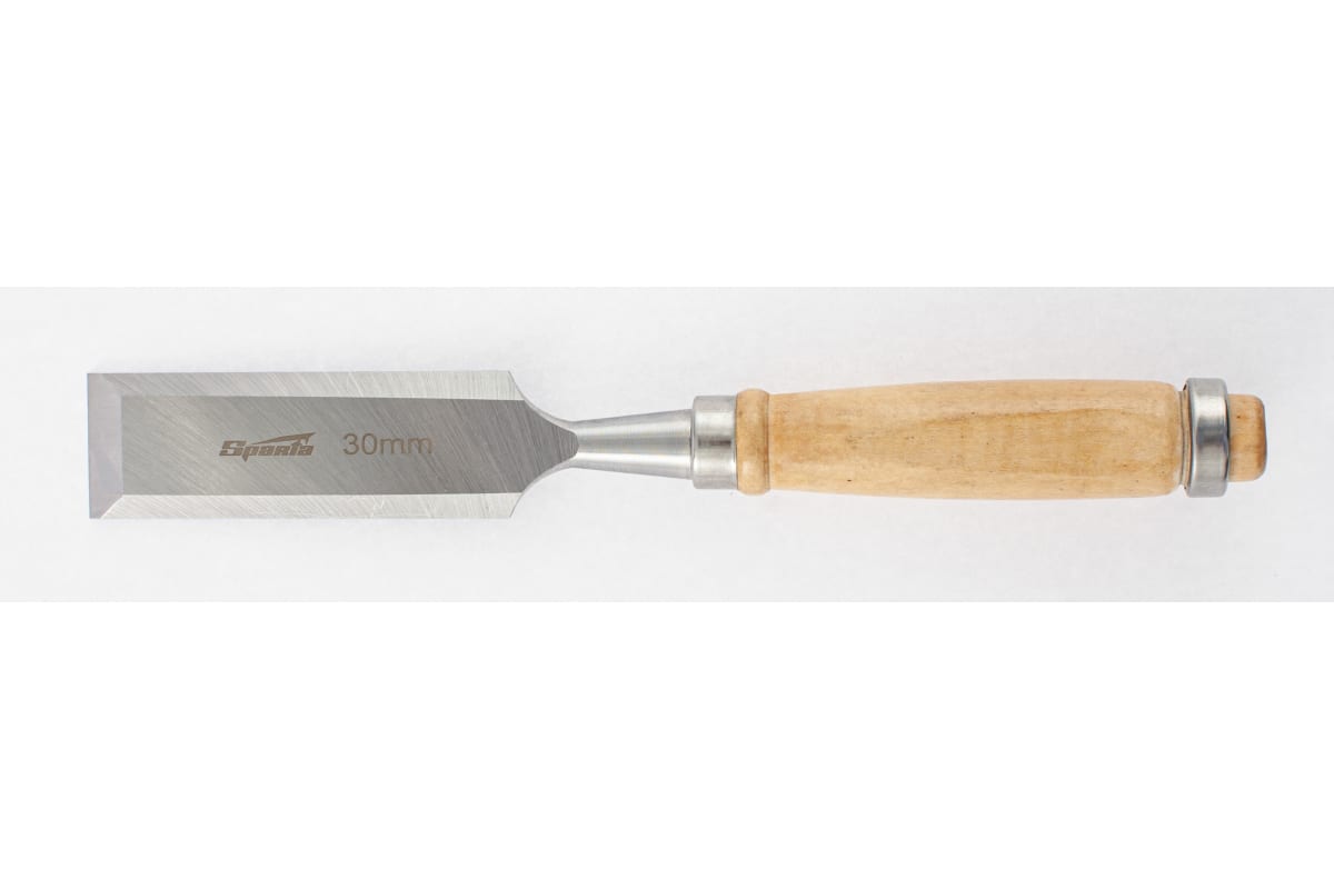 Долото-стамеска SPARTA 30 мм, деревянная рукоятка 242535 предназначено для столярных и плотничных работ- выборка и зачистка небольших прямоугольных пазов, снятия фасок в натуральной древесине любой твердости. Полотно стамески выполнено из конструкционной стали 45 и остро заточена. Твердость инструмента на длине 0,7 рабочей части полотна составляет 45-55 HRC. Рукоятка имеет защитное лакокрасочное покрытие и оборудована металлическим кольцом с тыльной стороны, которое предотвращает раскол дерева при ударах молотком или киянкой.