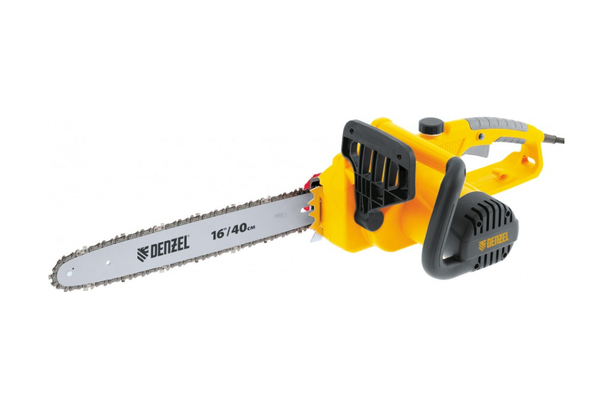 Электрическая цепная пила DENZEL SE-220P 95605 распиливает любые породы дерева.