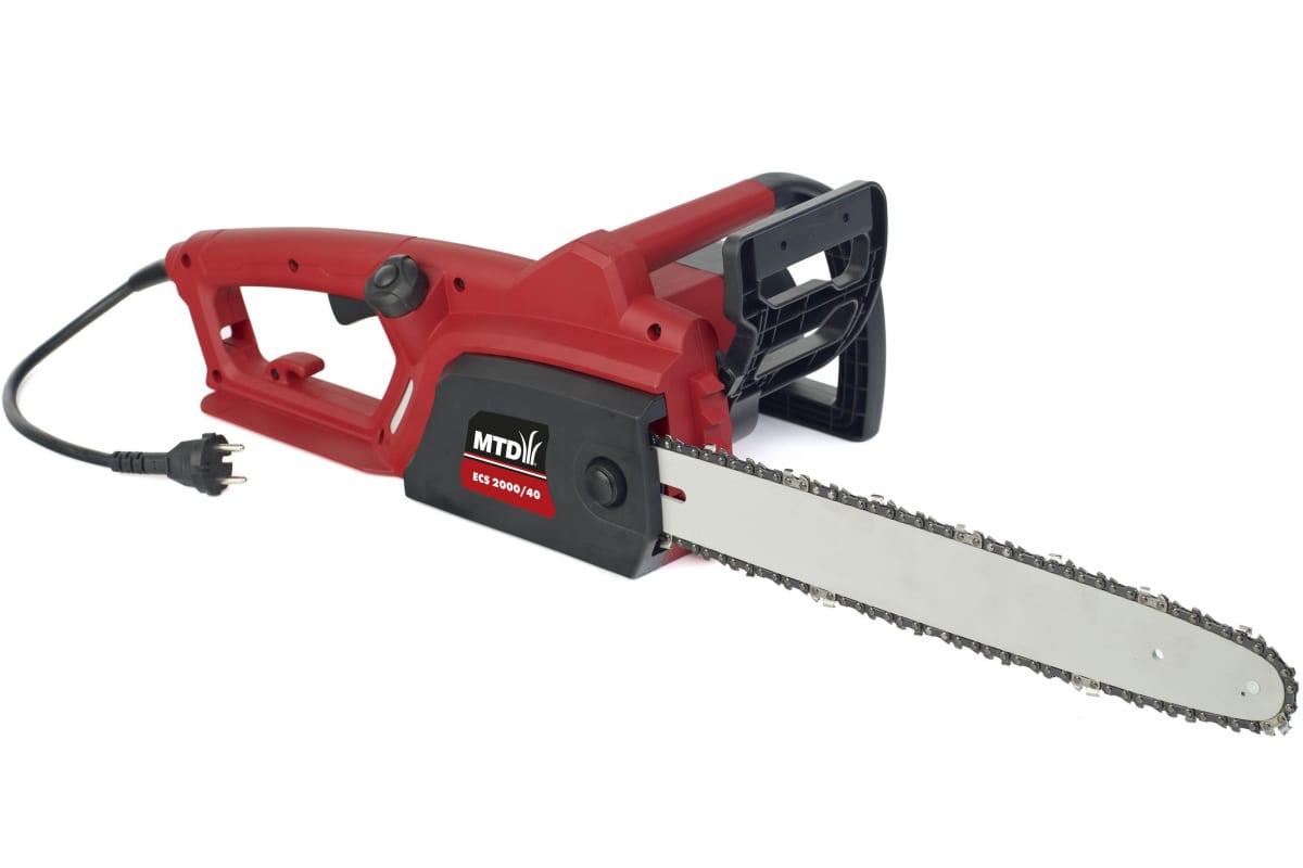 Электрическая цепная пила MTD ECS 2000/40 41AZ060-602 применяется на даче, строительной площадке - для быстрого и качественного распила древесины. Оснащена мощным двигателем, укомплектована 40-сантиметровой шиной и соответствующей цепью. Электропилы не наносят вреда окружающей среде, работают малошумно и отличаются простотой в использовании. Двигатель расположен поперечно, но пила при этом отлично сбалансирована. Автоматическая подача масла устраняет преждевременный износ цепи.