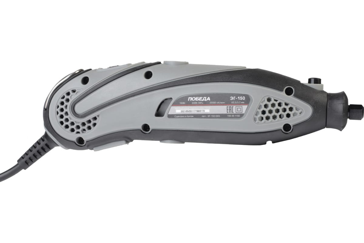 Электрический гравер ПОБЕДА ЭГ-150 150301150 предназначен для резки, шлифования, полирования, сверления, фрезерования и гравирования поверхностей различных материалов при установке соответствующих насадок. Имеет регулировку скорости, что повышает эффективность работы.