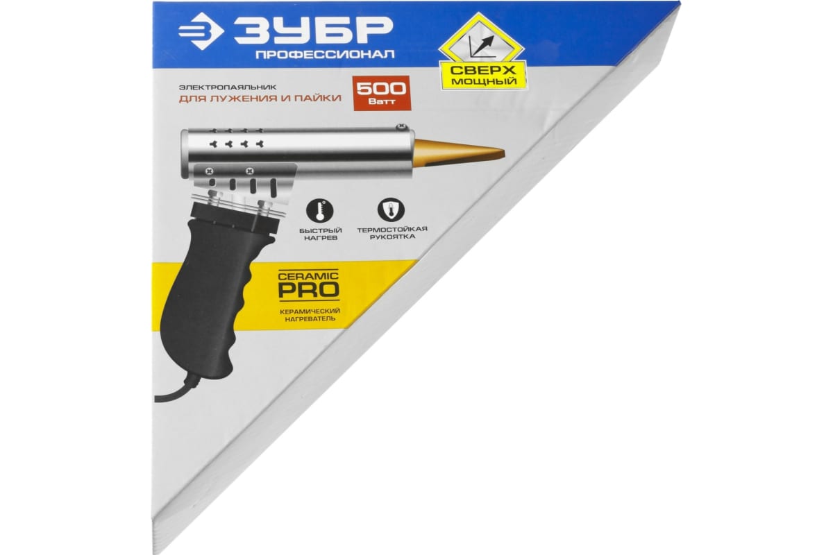 Преимущества ЗУБР ПРОФЕССИОНАЛ 500Вт, клин 55302-500- Высококачественный керамический нагревательный элемент Зубр ПРОФЕССИОНАЛ 500Вт, клин 55302-500 обеспечивает быстрое достижение необходимой температуры жала;
