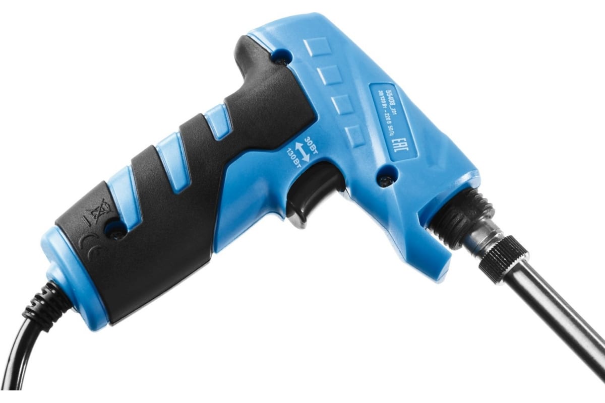 Электропаяльник ЗУБР Профессионал пистолетного типа 30Вт/130Вт, конус 55408_z01 - надежное, долговечное и качественное приспособление для ручной пайки медных проводников, отпайки и лужения. Изделие соответствует самым высоким требованиям стандартов. Станет надежным помощником и для домашнего мастера, и для профессионала.