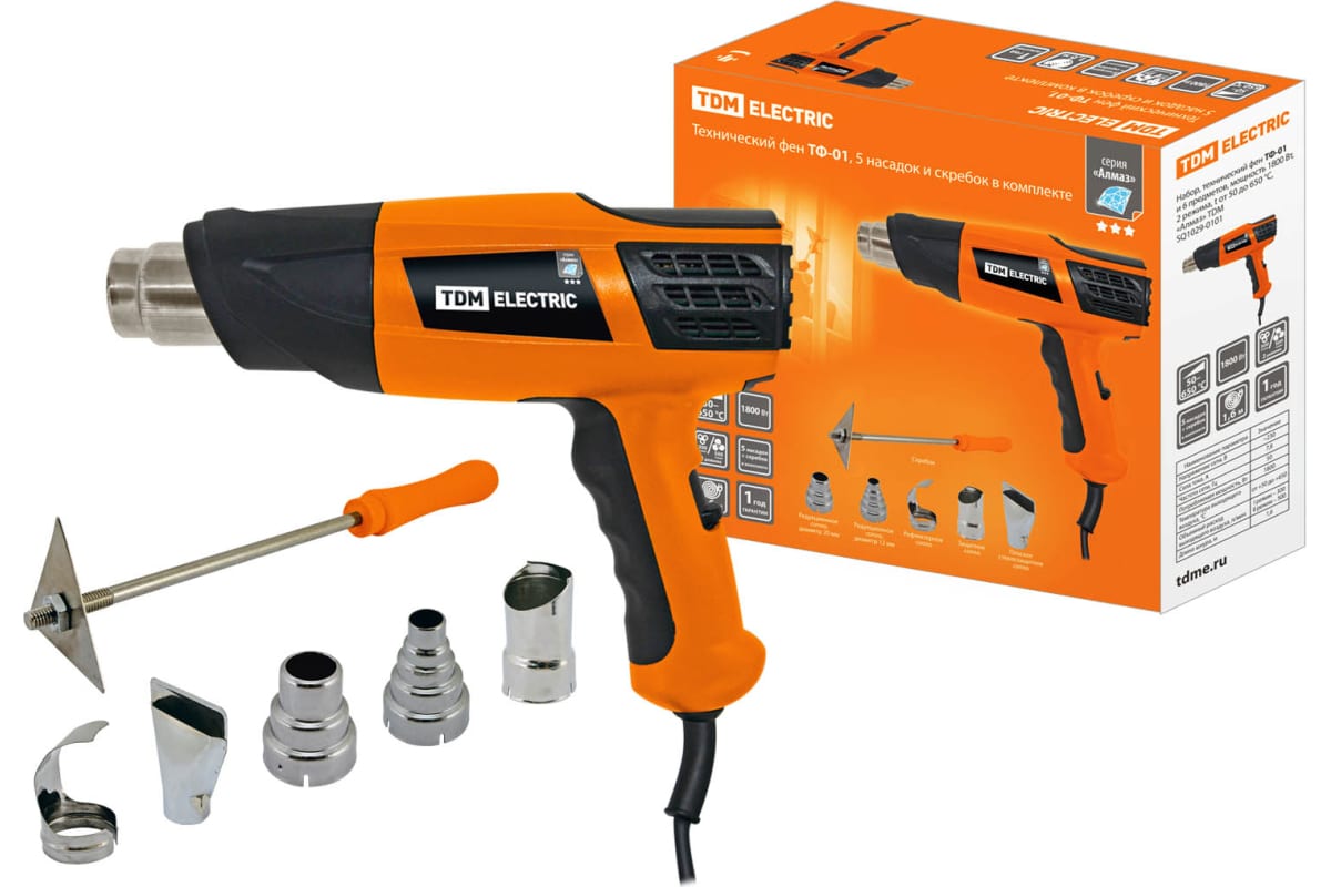 Фен КВТ ТТ-1800 65147 - легкий инструмент, используемый для монтажа термоусаживаемой трубки. Имеется три режима нагрева спирали: 50, 380 и 550 градусов. Мощность данной модели 1800 Вт. Фен поставляется с 4 насадками, что расширяет спектр работ. Кейс решает вопрос хранения и транспортировки.