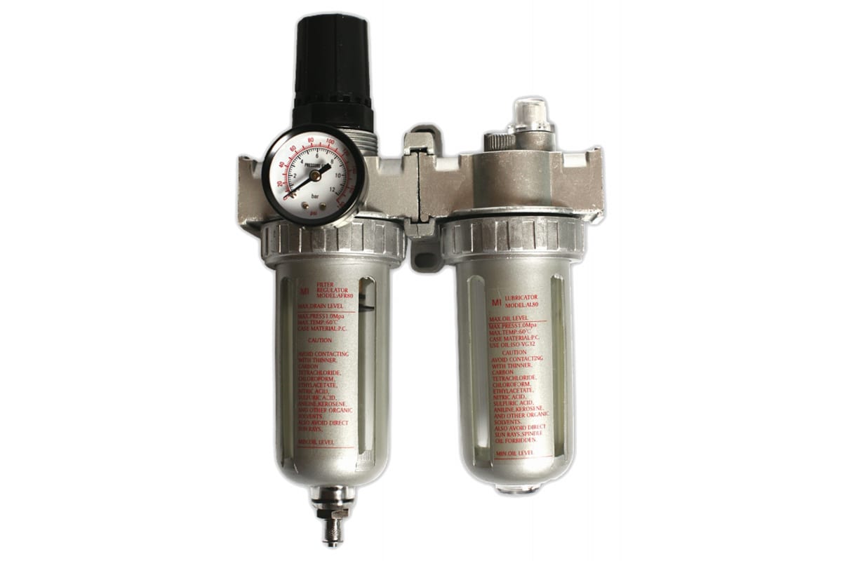 Фильтр-лубрикатор с регулятором давления и манометром HUBERTH RP208039-1 обеспечивает подготовку воздуха для пневматического инструмента. Имеет манометр и регулятор давления. Оснащен конденсатоотводчиком.