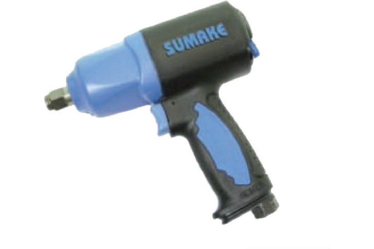 Гайковёрт SUMAKE ST-C541 8094580 работает на сжатом воздухе, благодаря чему не подвержен короткому замыканию и не может стать причиной возгорания на рабочей площадке. Модель пользуется популярностью в сфере автосервиса и позволяет заворачивать крепеж с моментом силы 542 Нм. Специальный выступ не дает рукояти выскальзывать из руки оператора.