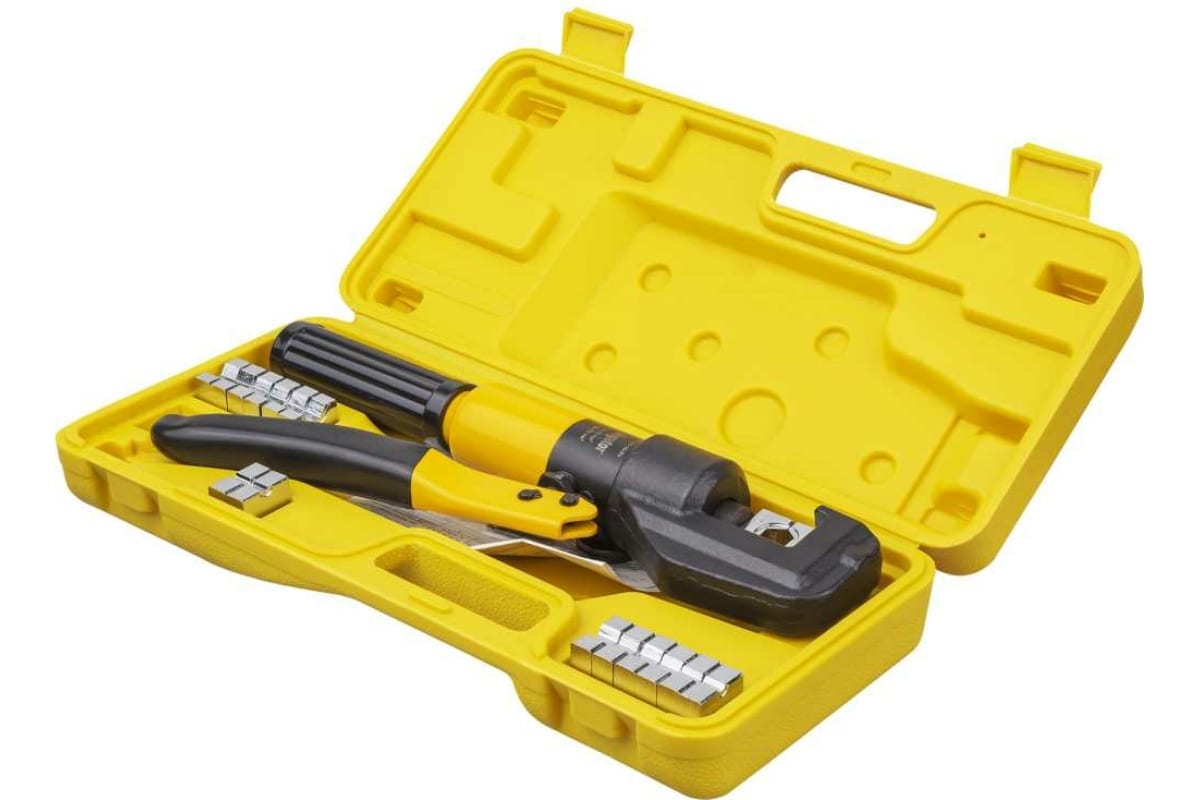 Высокоточные безлюфтовые матрицы гарантируют высокое качество выполняемых работ. Гексагональный профиль опрессовки обеспечивает равномерное обжатие хвостовика наконечника или кабельной жилы по всему периметру. Инструмент имеет комплект сменных матриц для работы с кабелями различного сечения. Прочный пластиковый кейс с эргономичной рукояткой обеспечивает удобное хранение и транспортировку.