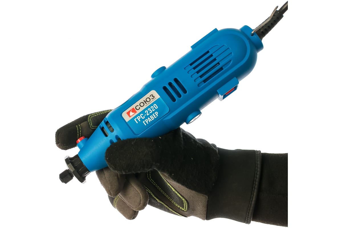 Гравер СОЮЗ ГРС-2320 подходит для широкого спектра работ: резки, шлифовки, зачистки, гравировки изделий из металла, стекла, керамики.