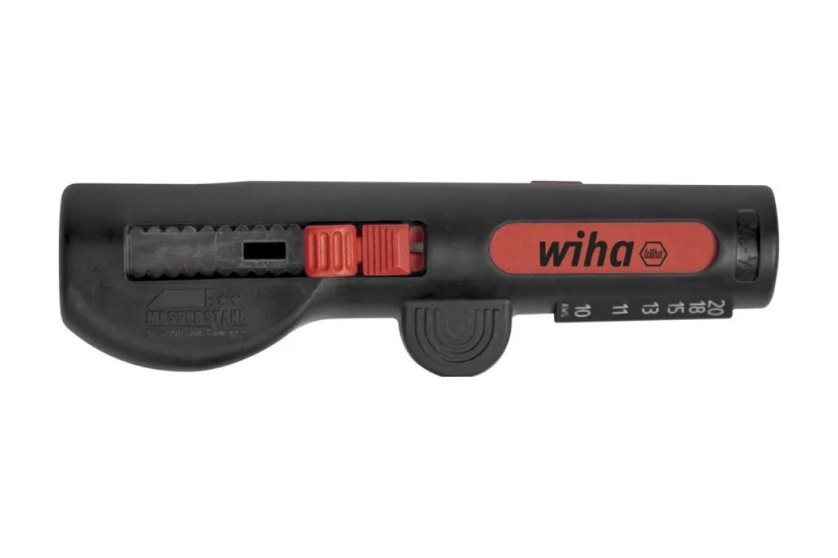 Инструмент для работы с NYM-кабелем Wiha снятие ПВХ-облочки круглого кабеля wih44242длиной 125 мм. Точное, безопасное и быстрое снятие изоляции с кабеля диаметром от 8 до 13 мм (3 x 1.5 мм² - 5 x 2.5 мм²) и с жил от 0,5 мм² до 6 мм². Не требуется предварительная настройка глубины реза.