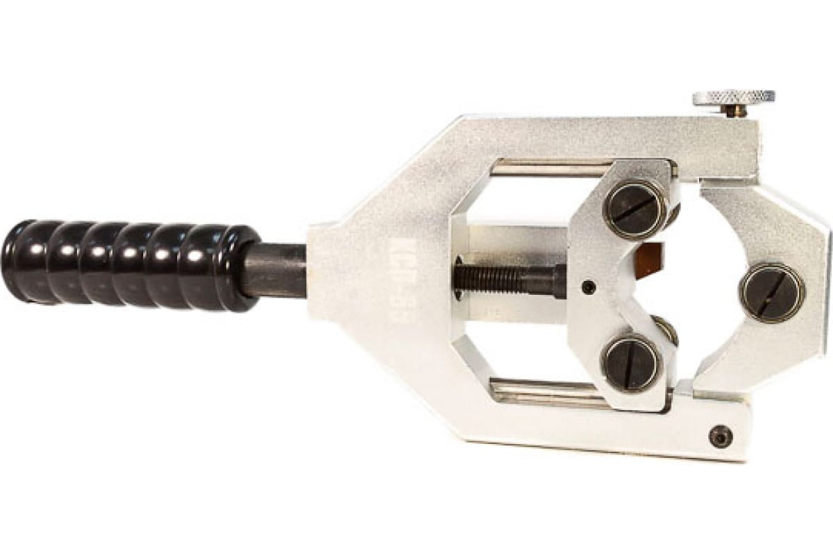 Инструмент для разделки кабеля из сшитого пэ КВТ КСП-65 63024 применяется для снятия изоляции и снятия полиэтиленового экрана с высоковольтного кабеля диаметром 40-65 мм. Инструмент позволяет регулировать диаметр и глубину реза снятия изоляции. Изделие оснащено рукояткой, при помощи которой и происходит прижим провода.