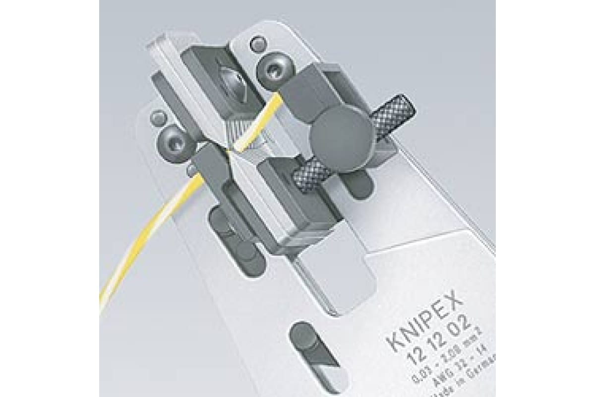 Преимущества инструмента Knipex KN-121202- Зачистка без повреждений тонкожильного кабеля;