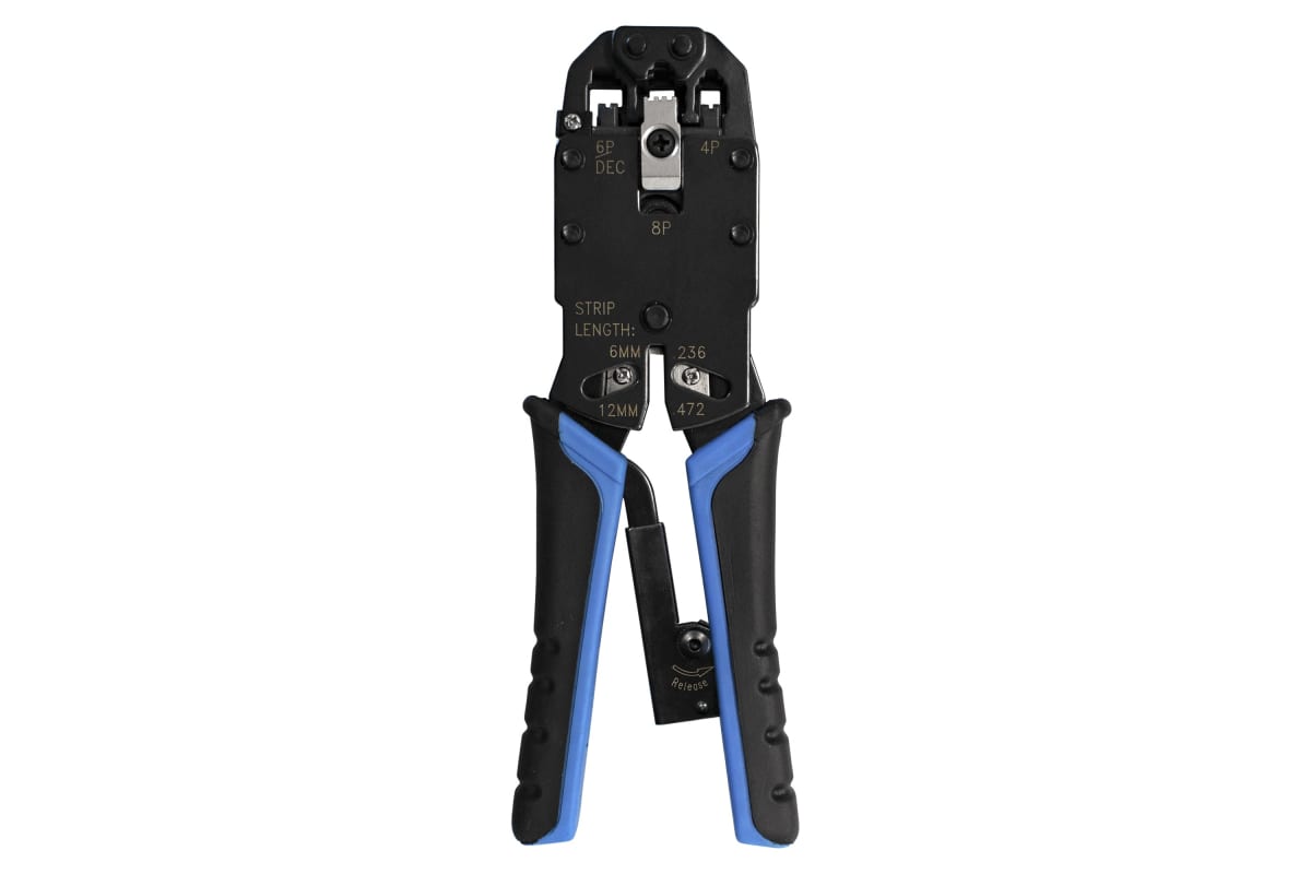 Инструмент ExeGate EX-T2008R для обжима RJ-45, RJ-11, 12, с храповым механизмом, прямой ход обжимки 293155 предназначен для резки, зачистки кабелей и обжима экранированных и неэкранированных коннекторов различного типа. Подходит для профессионального применения.