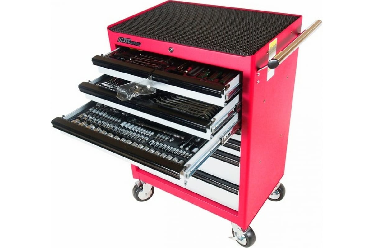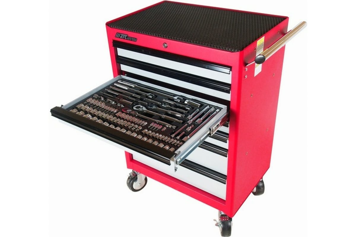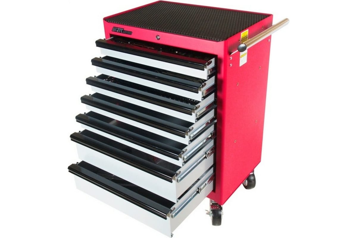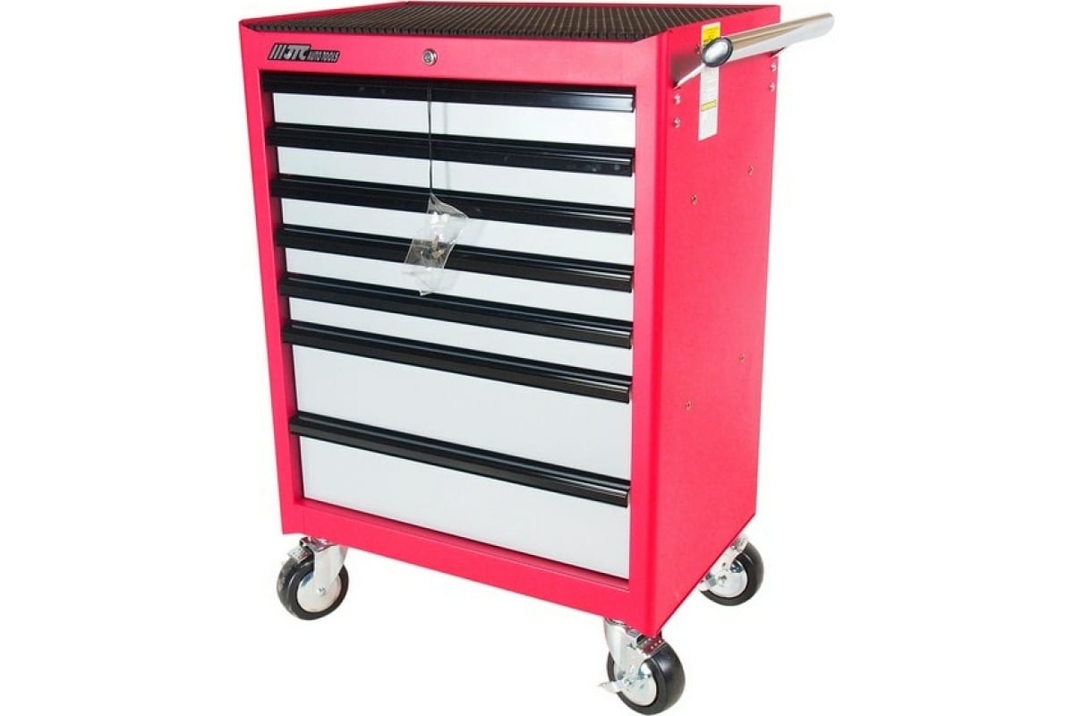Инструментальная тележка (7 секций, с набором инструментов JTC-39311, -39312, -39313) JTC 3931S - это максимально удобное приспособление, которое пригодится на любой станции технического обслуживания автомобилей или в частной столярно-слесарной мастерской. Конструкция данной модели, а именно: 5 плоских (580х377х59 мм) и 2 глубоких (580х377х138 мм) секции, а также верхняя полка позволяют работнику держать все ручные инструменты в одном месте, предварительно рассортировав по назначению, размеру или по любому другому параметру. Благодаря поворотным колесам и эргономичной рукоятке тележку легко транспортировать с одного рабочего места на другое.