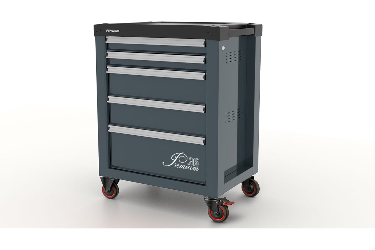 Инструментальная тележка Ferrum "Premium" с 5 ящиками 12.305-7016/7016 для хранения ручного инструмента и оборудования.