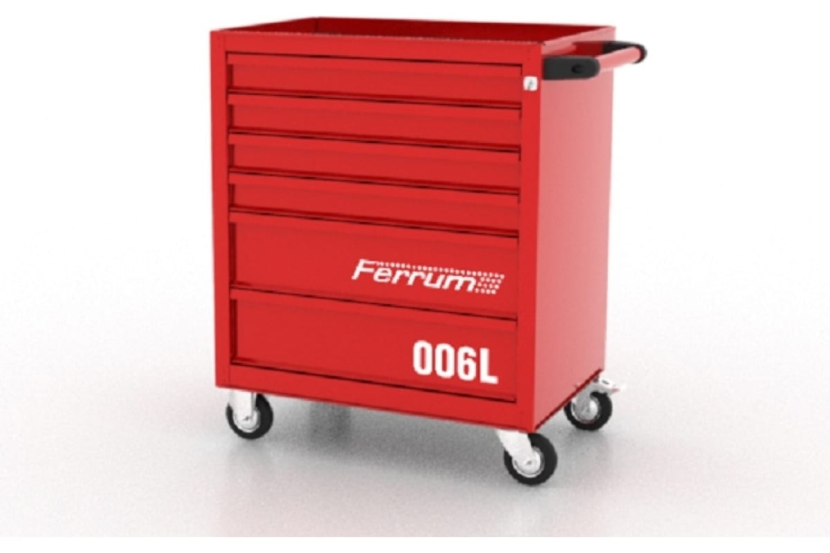 Инструментальная тележка FERRUM с 6 ящиками 02.006-3000 предназначена для хранения и транспортировки различных инструментов, крепежа и аксессуаров.