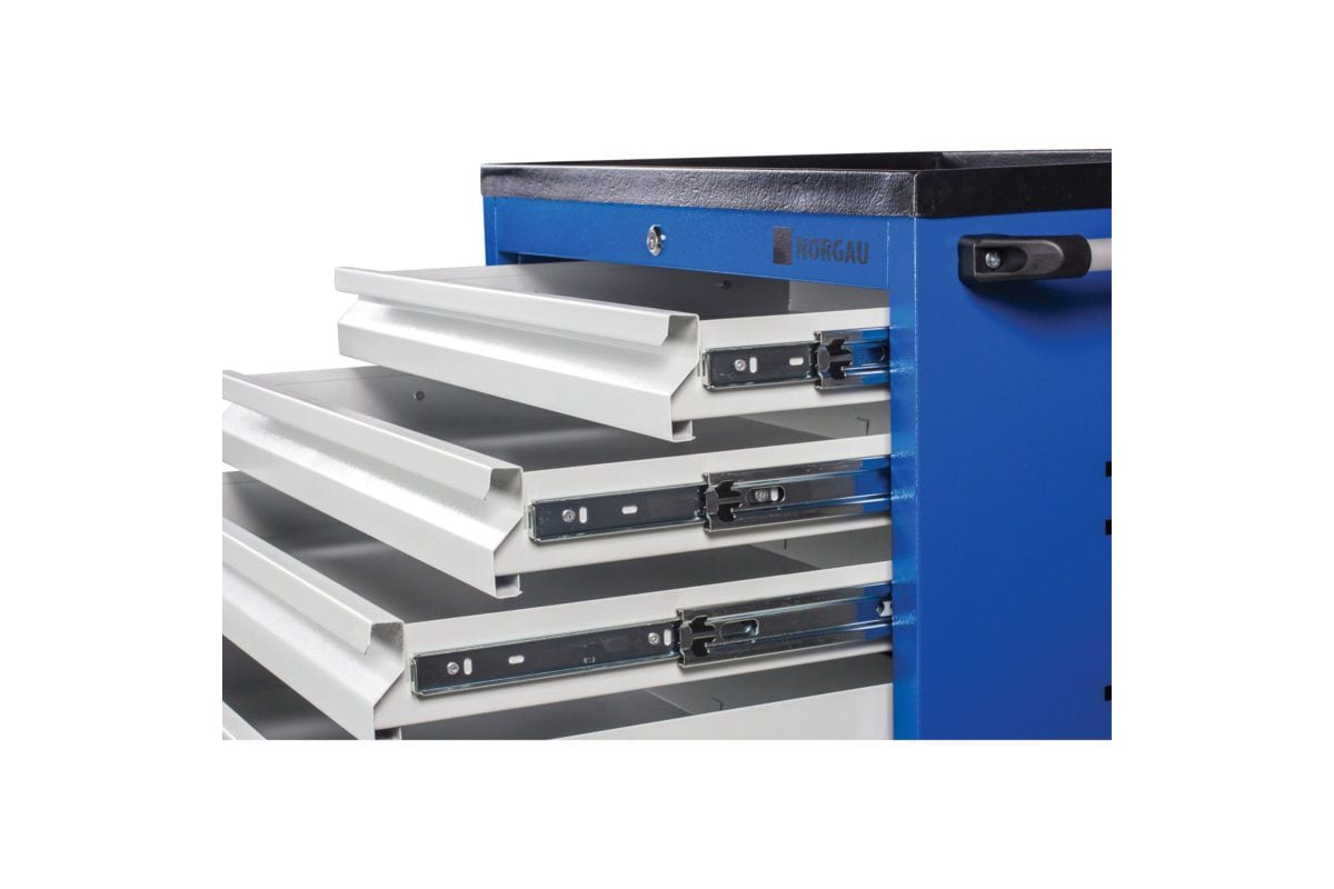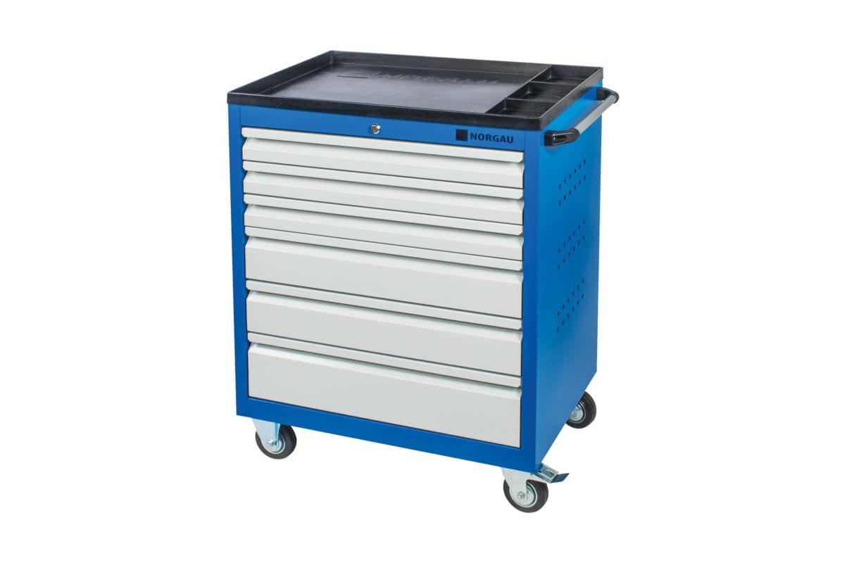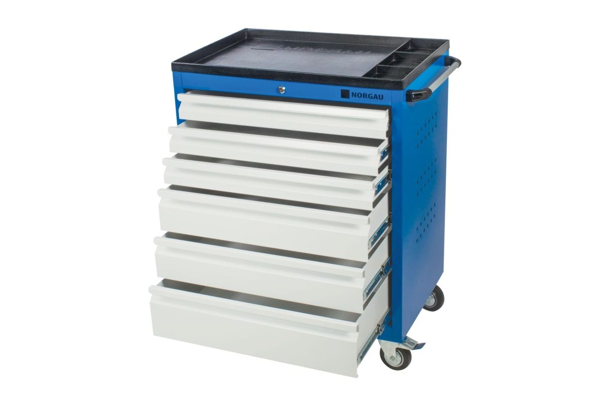 - Инструментальная тележка NORGAU 6 ящиков, тип RAL5005/7035 ТН163838 многофункциональна, позволяет экономить пространство. Помимо ящиков по бокам с двух сторон есть перфорация 10х10 под навесное оборудование.